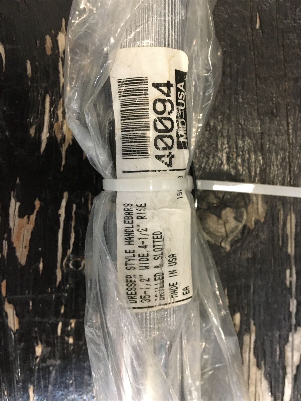 Dresser Style Handlebar 1” Chrome #40094. Condition is new. Drilled and slotted for wiring. 35-1/2” wide, 4-1/2” rise, 8” pullback, 11” center and knurled 3-1/2” center to center. Buyer is responsible for fitment and applications