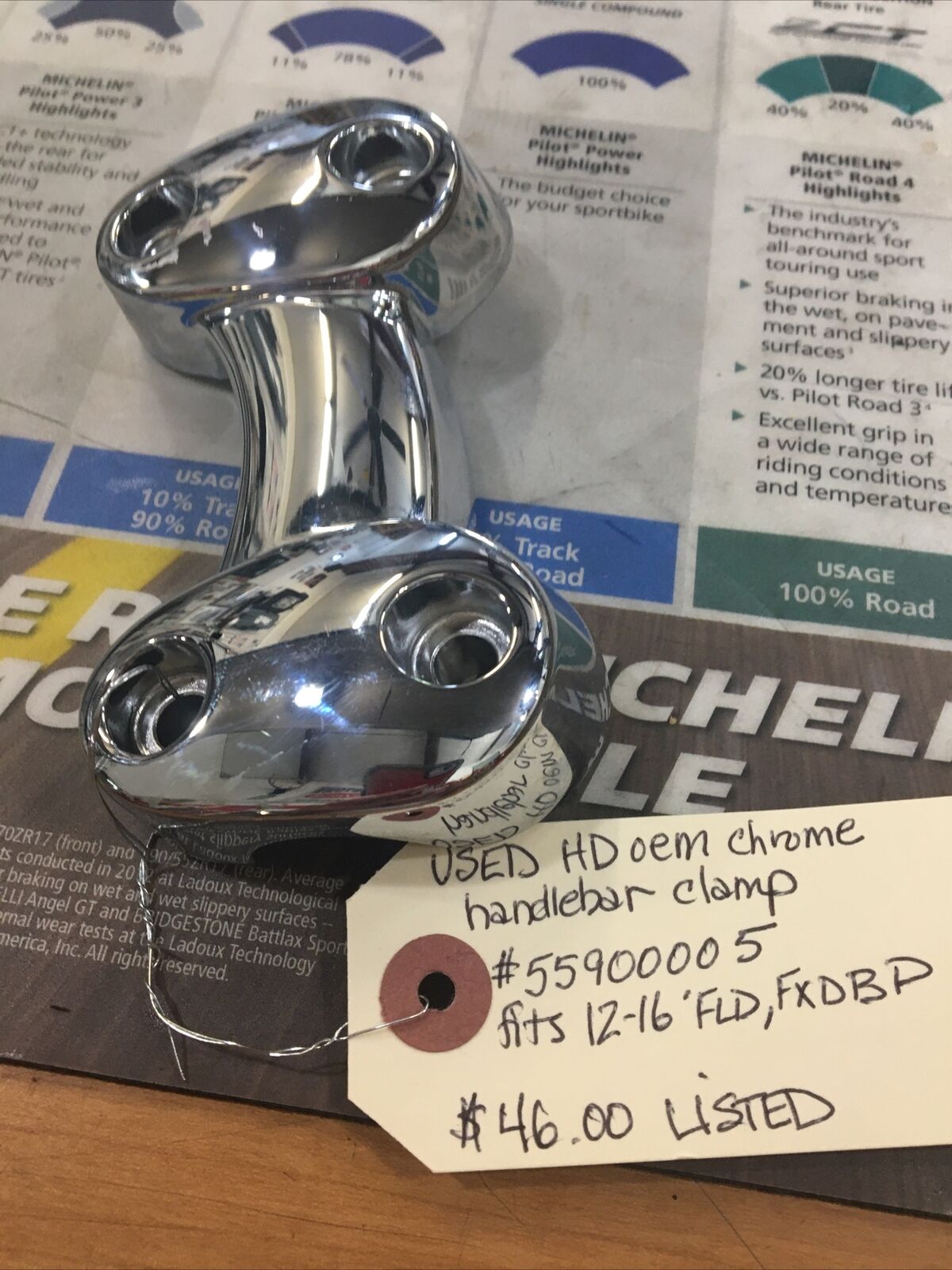 Harley Davidson oem chrome handlebar clamp #55900005. Condition is used. Fits 12-16’ FLD, FXDBP models buyer is responsible for fitment and applications