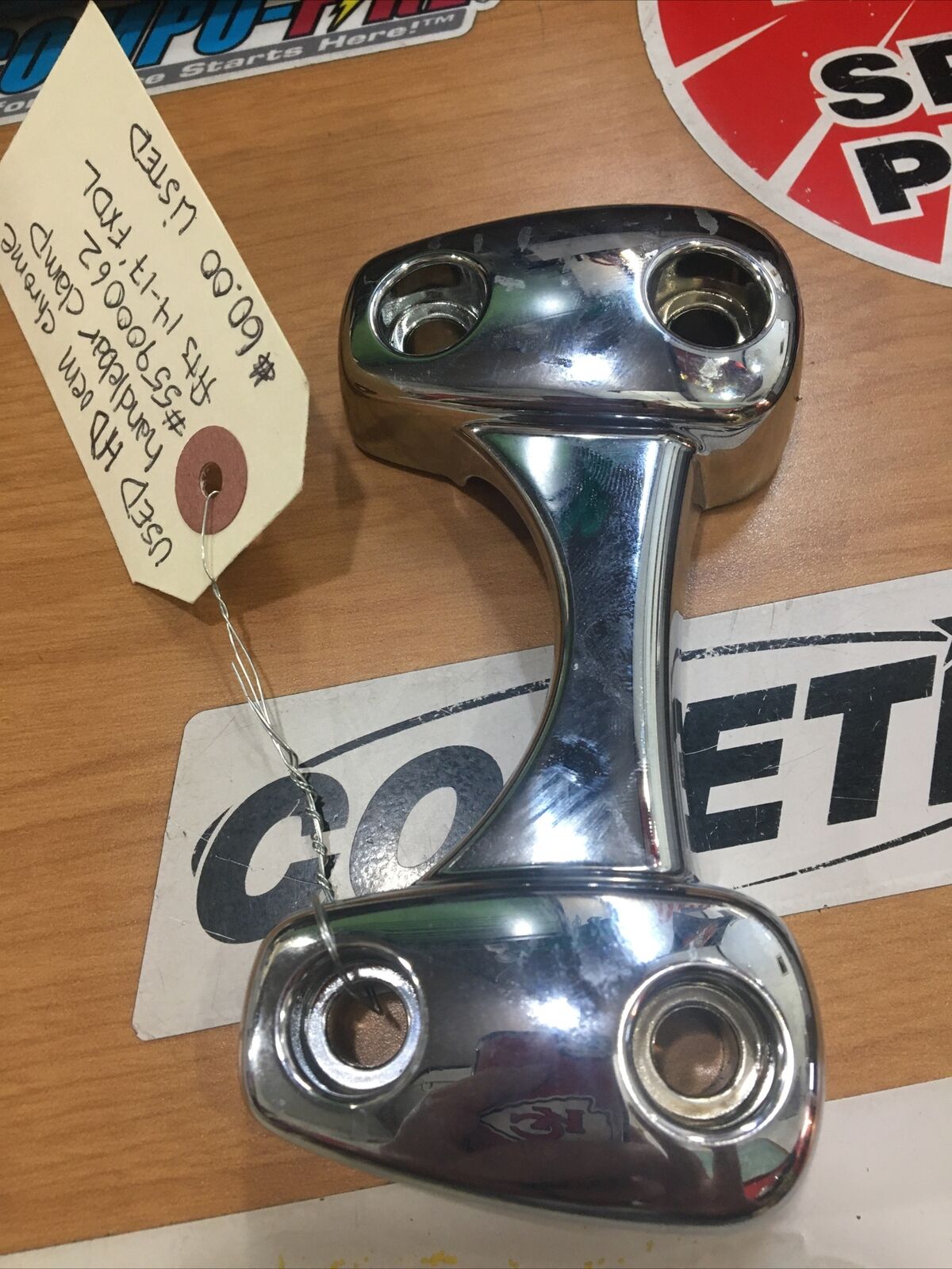 Harley Davidson oem chrome handlebar clamp #55900062. Condition is used. Fits 14-17’ FXDL models buyer is responsible for fitment and applications