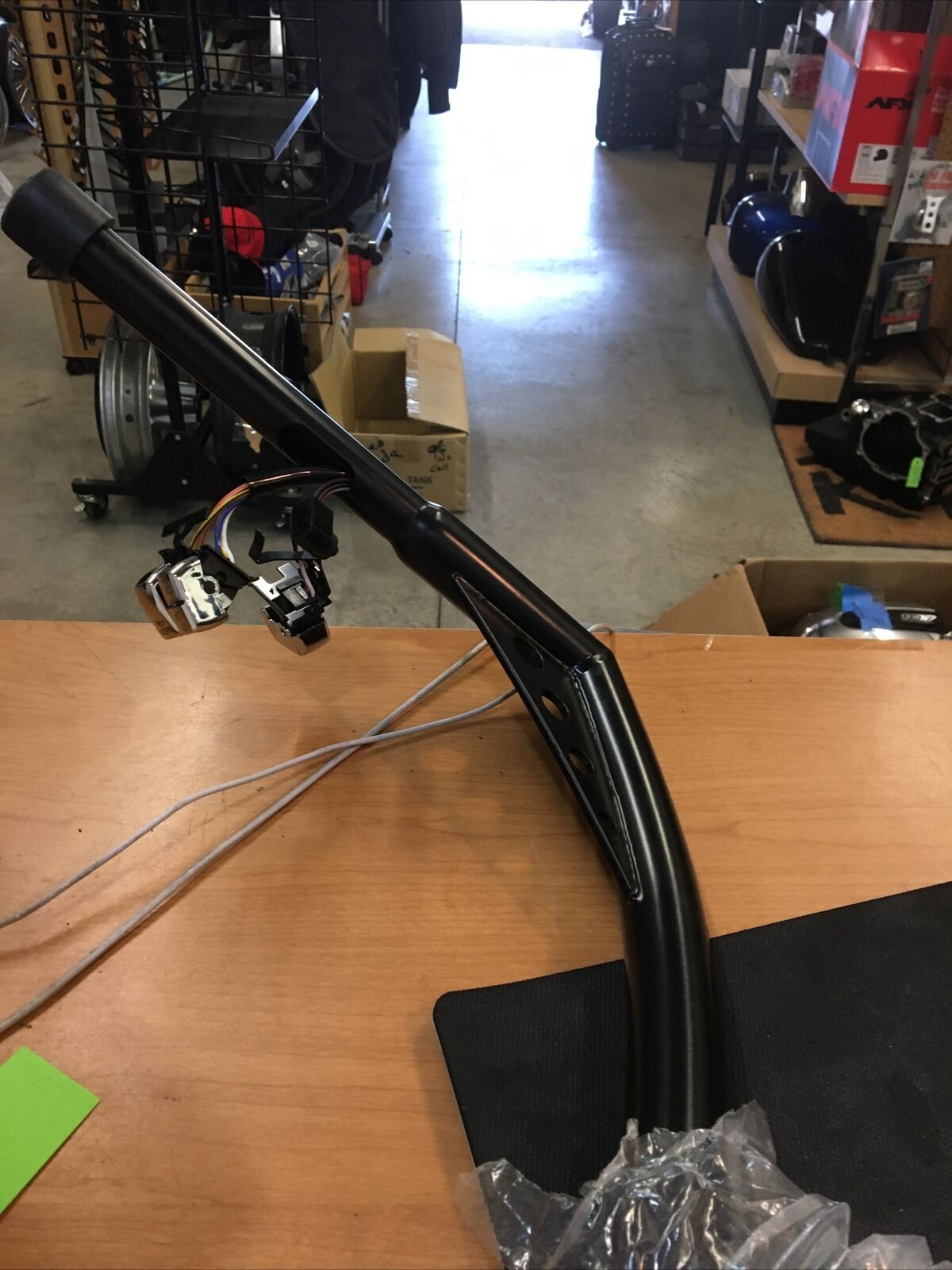 12” Black Ape hangers 1-1/4” pre wired with switches. Condition is “Used”.fits Dyna, Softails with Throttle by wire applications buyer is responsible for fitment and applications no returns