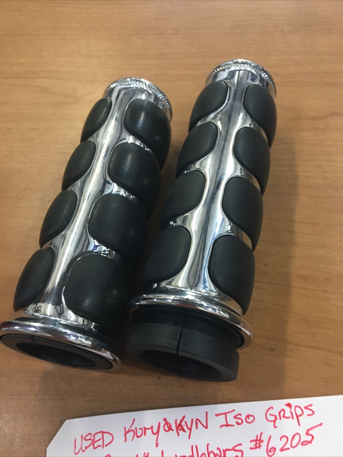 Kuryakyn Iso Grips For Harley #6205. Condition is used. Fits 1” handlebars with dual-cable throttle. Missing throttle sleeve and 3 screws in one of the endcaps. Buyer is responsible for fitment and applications
