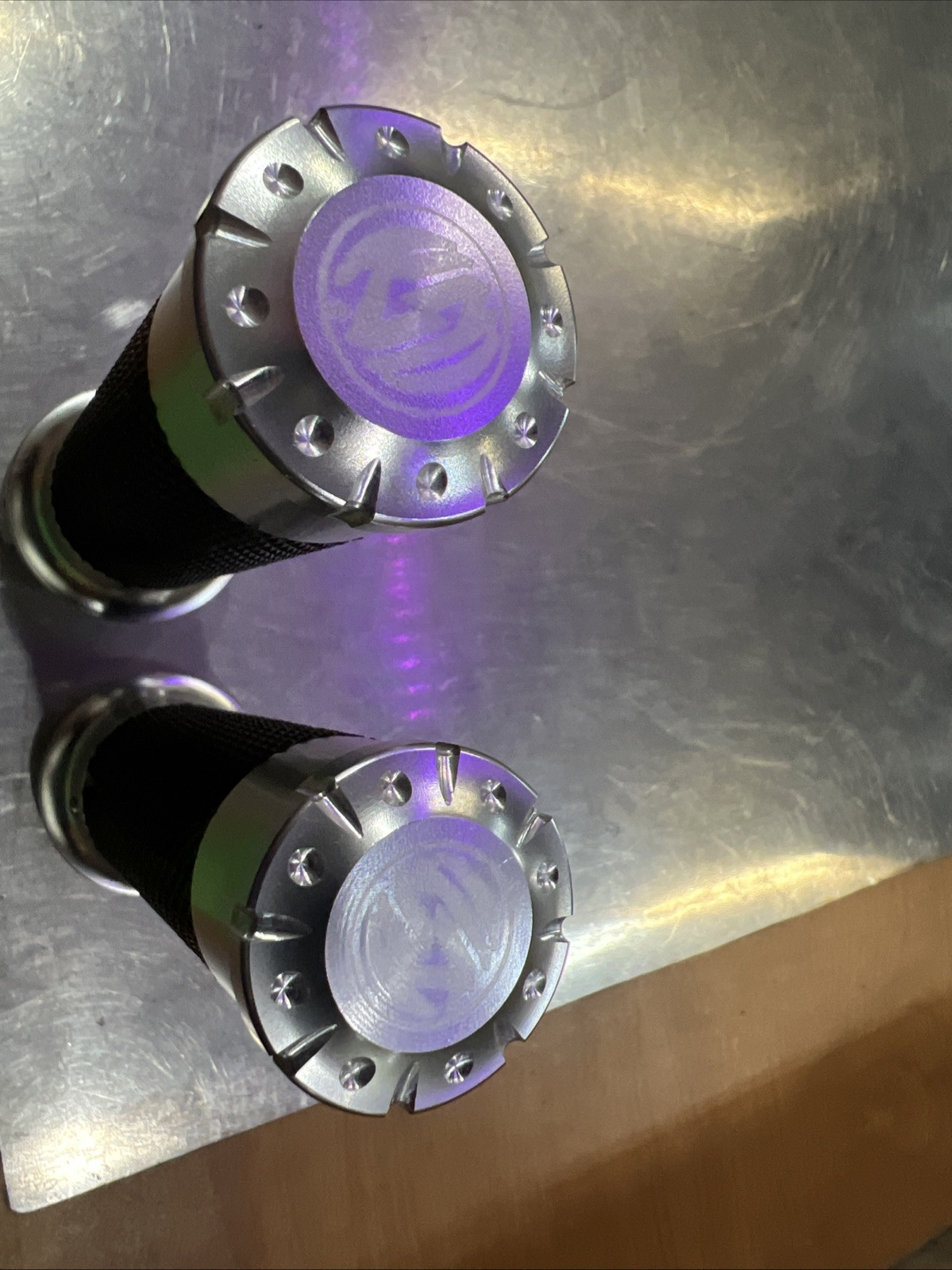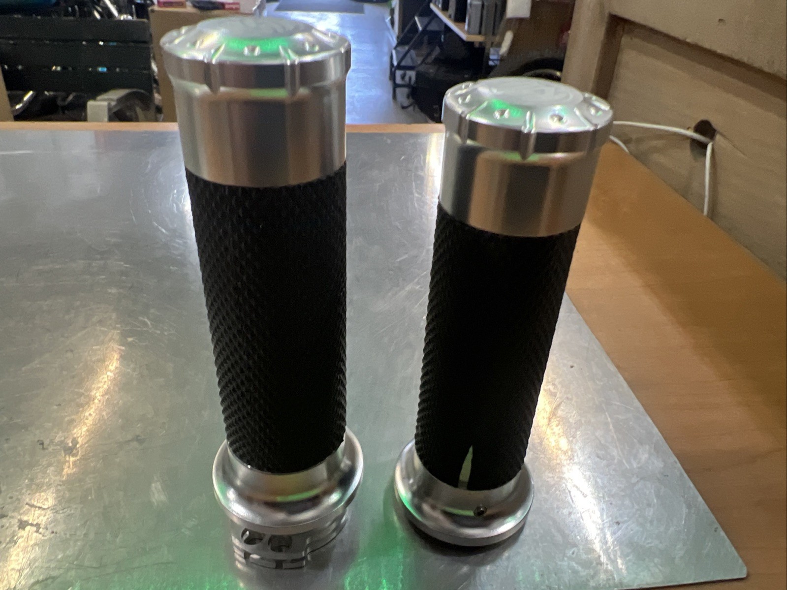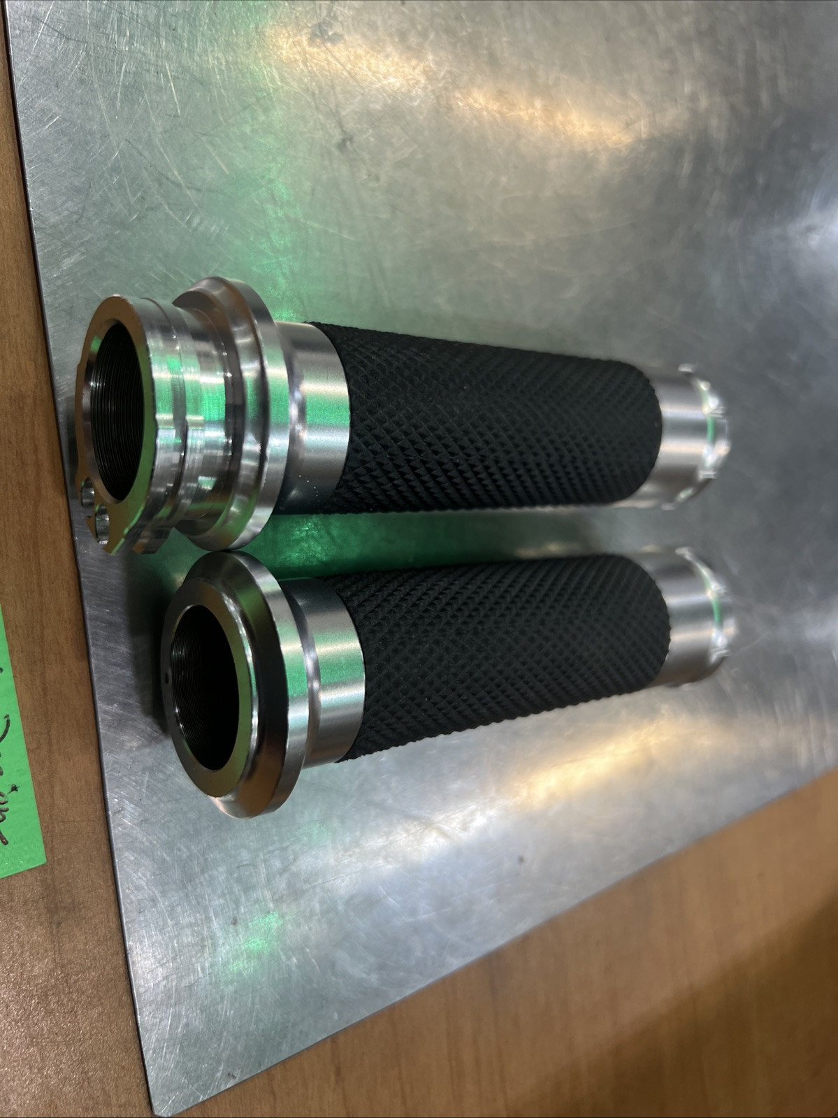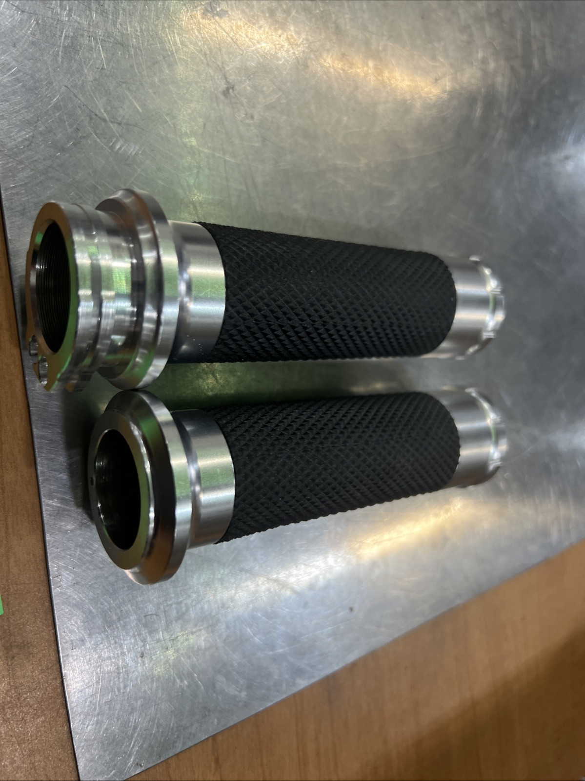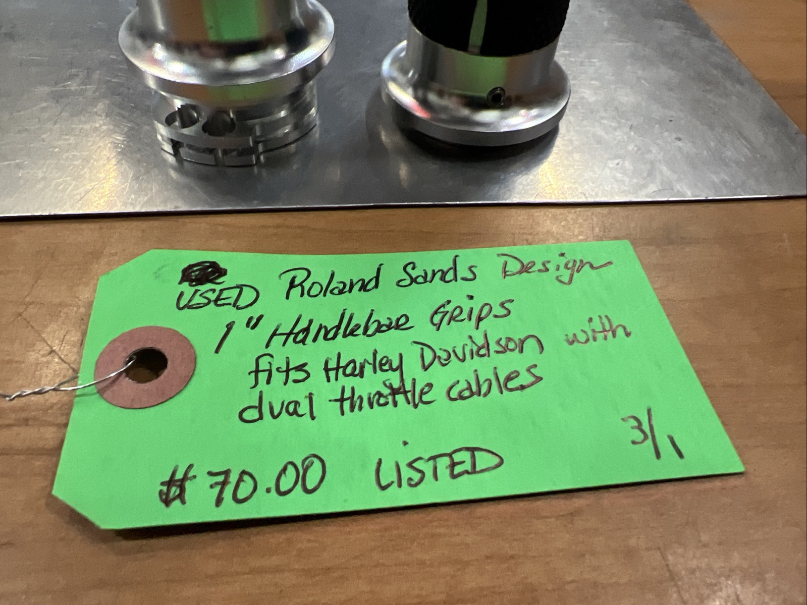 Roland Sands Design 1” Handlebar Grips. Condition is used. One has a slit in grip as seen in pictures. Fits Harley Davidson models with dual throttle cables buyer is responsible for fitment and applications