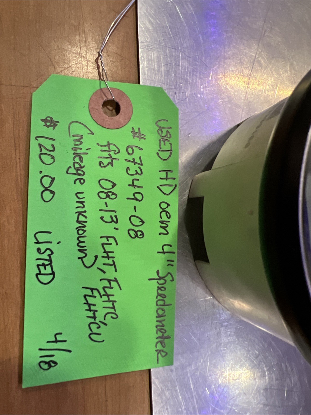 Harley Davidson oem 4” Speedometer #67349-08. Condition is used. Mileage unknown. Fits 08-13’ FLHT, FLHTC, FLHTCU models buyer is responsible for fitment and applications