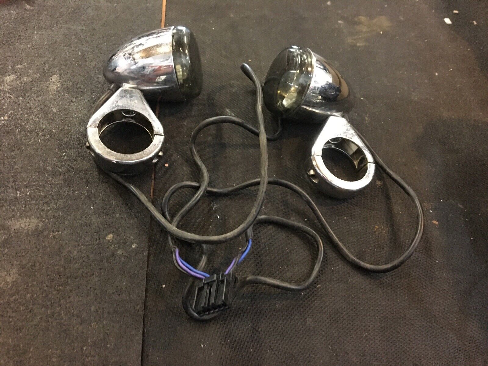 39mm Front Turn Signals With Smoked Lenses. Condition is Used.fits 39mm fork tubes buyer is responsible for fitment and applications certain applications may have to rewire plug