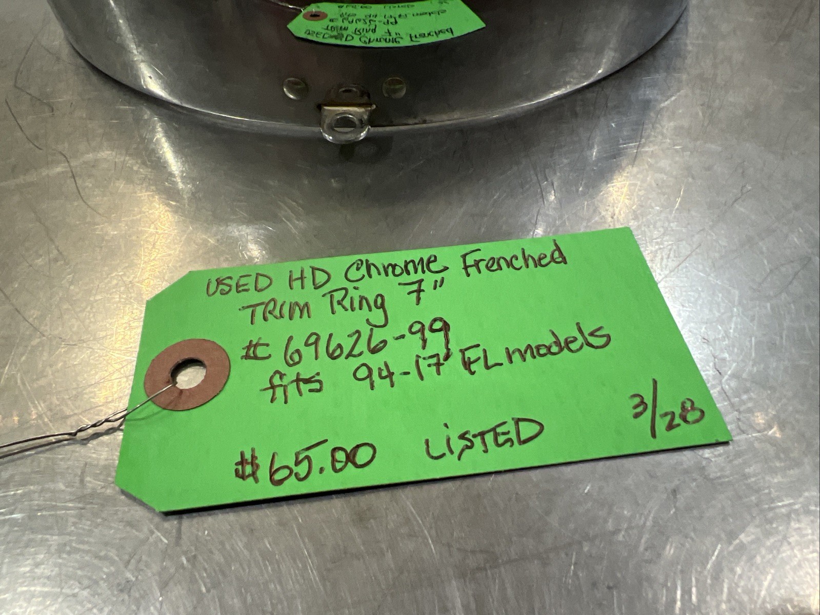 Harley Davidson Chrome Frenched Trim Ring 7” #69626-99. Condition is used. Fits 94-17’ FL models buyer is responsible for fitment and applications