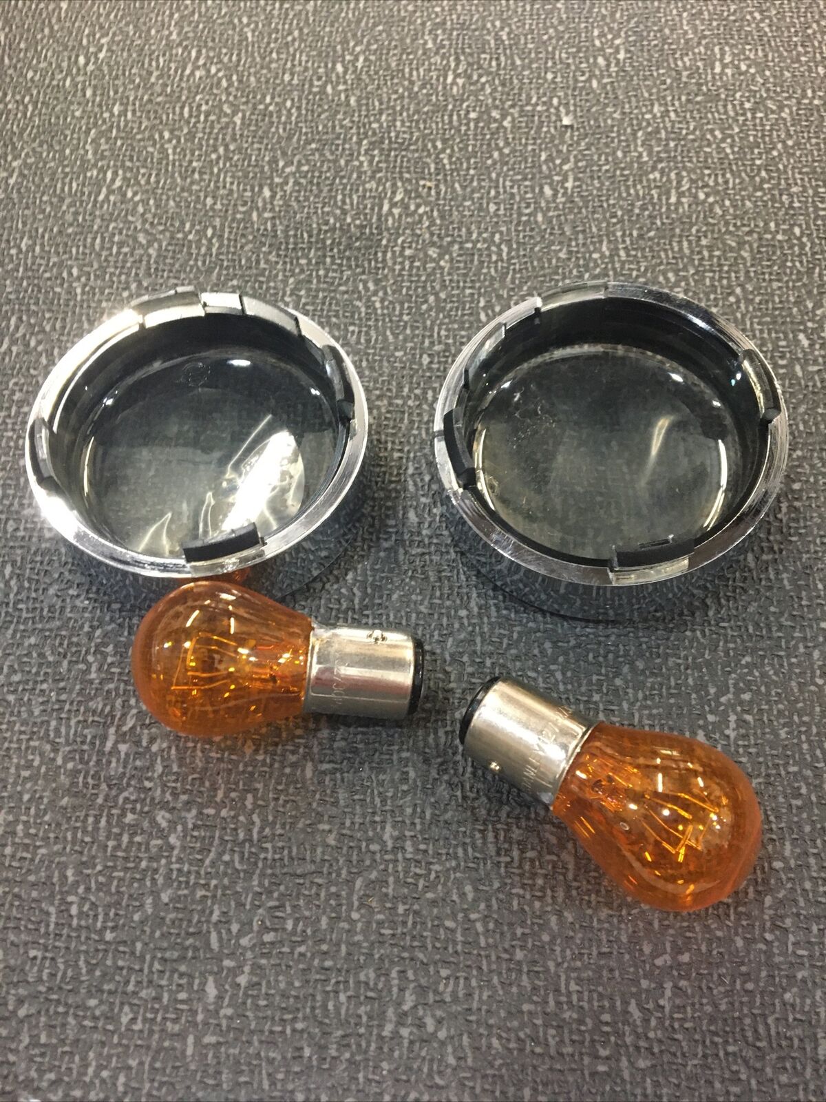 Harley Davidson front turn signal trim rings with smoked lenses/bulbs #69739-01