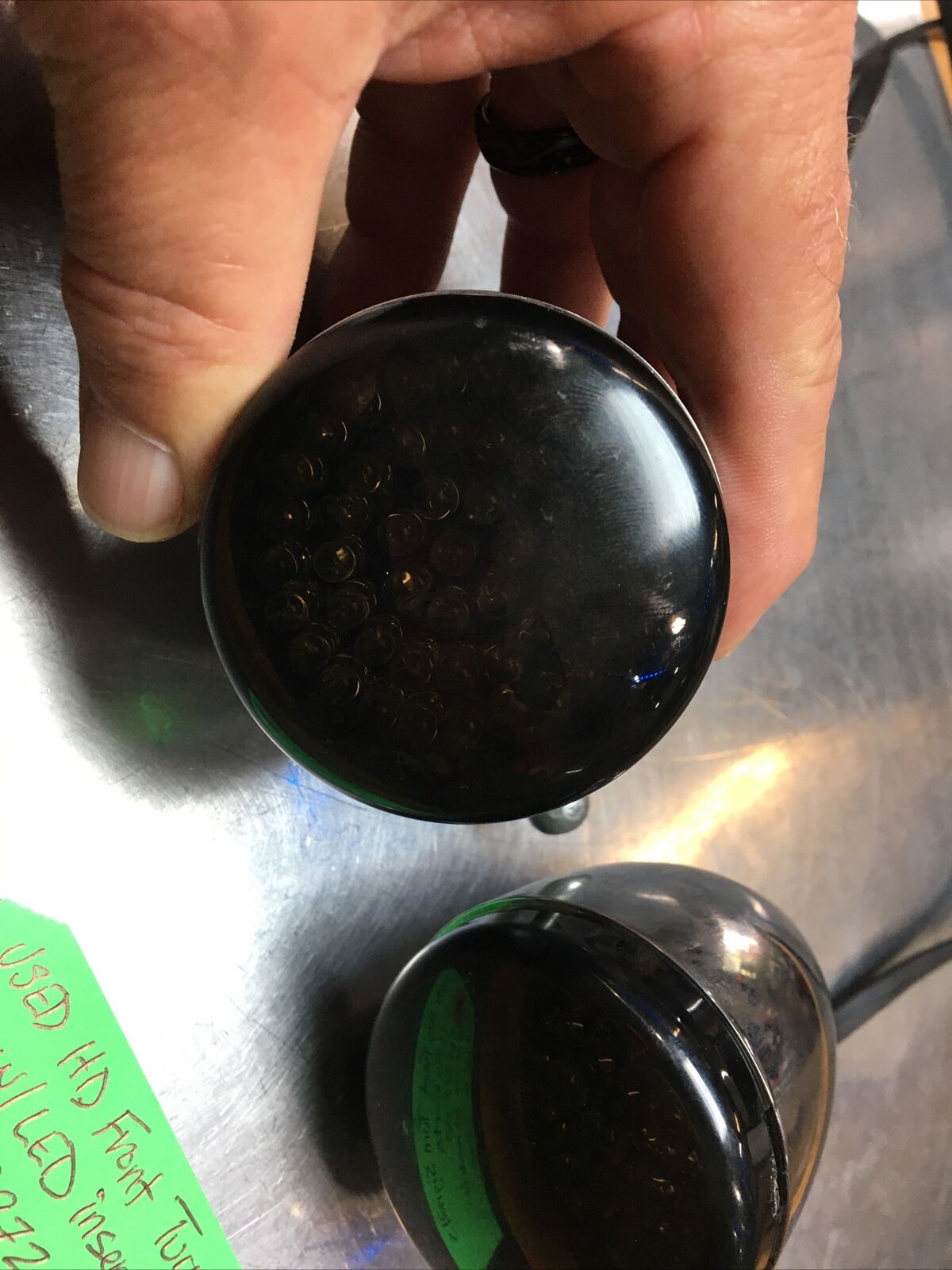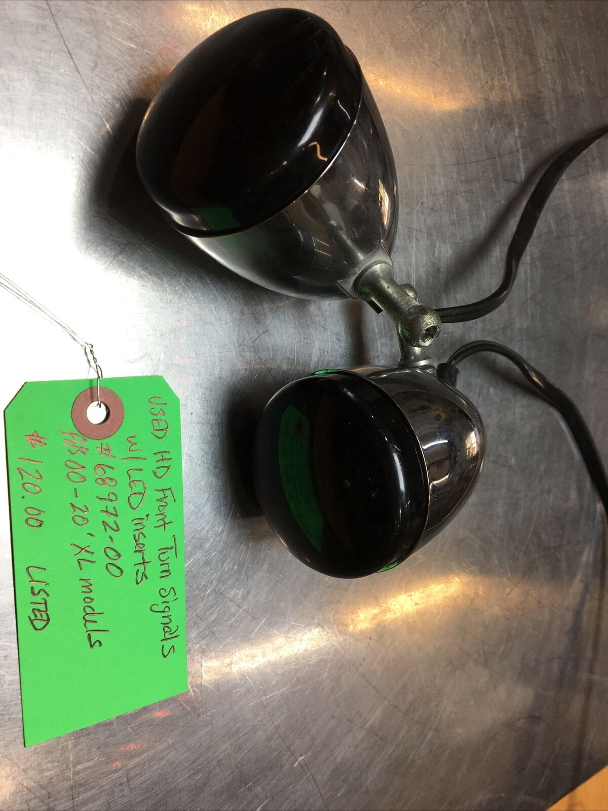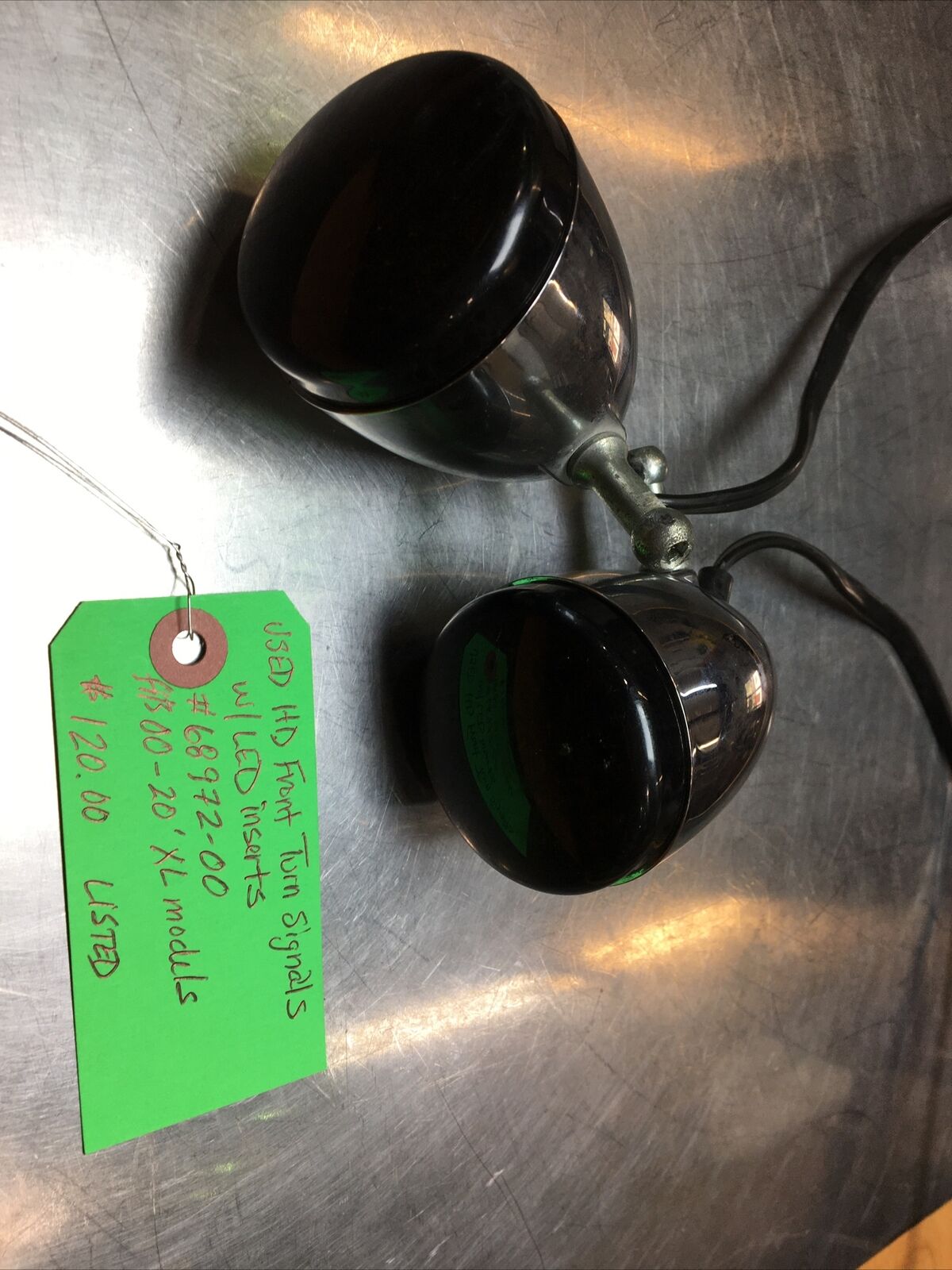 Harley Davidson Front Turn Signals w/LED inserts #68972-00. Condition is used. Fits 00-20’ XL models buyer is responsible for fitment and applications