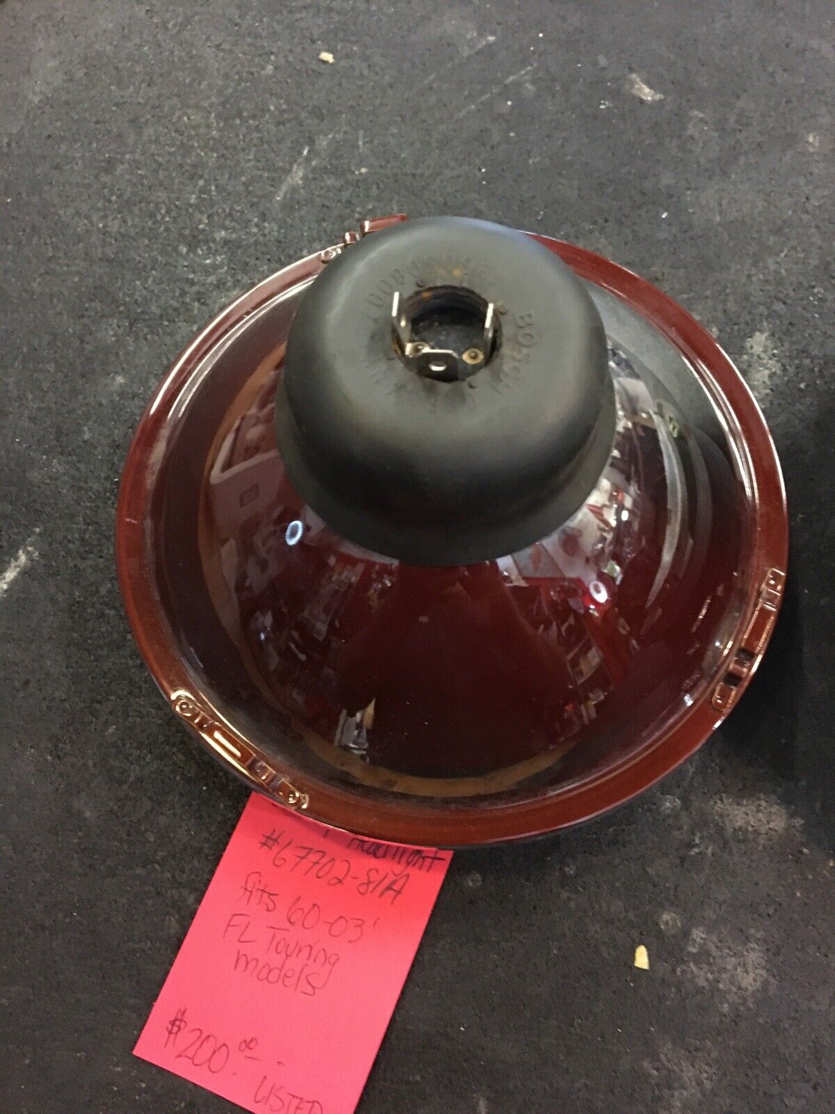 Harley Davidson OEM 7” Headlamp #67702-81A. Condition is Used.includes Halogen bulb and mounting ring and bucket no retaining or trim ring fits 60-03’ FL Touring models buyer is responsible for fitment and applications