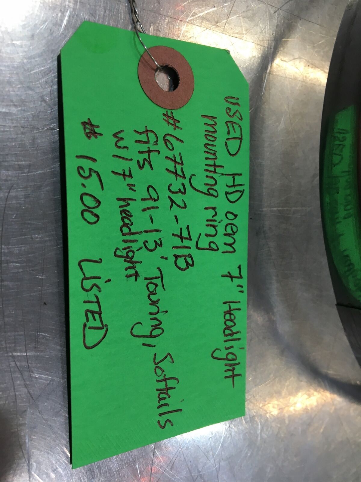Harley Davidson oem 7” Headlight Mounting Ring #67732-71B. Condition is used. Fits 91-13’ Touring and Softails with 7” headlight buyer is responsible for fitment and applications