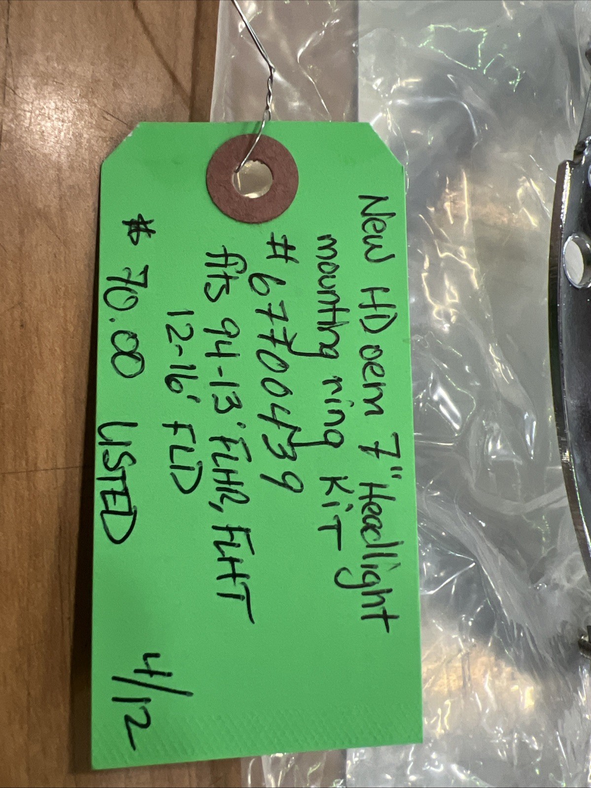 Harley Davidson oem 7” Headlight Mounting Ring Kit #67700439. Condition is new. Fits 94-13’ FLHR, FLHT and 12-16’ FLD models buyer is responsible for fitment and applications