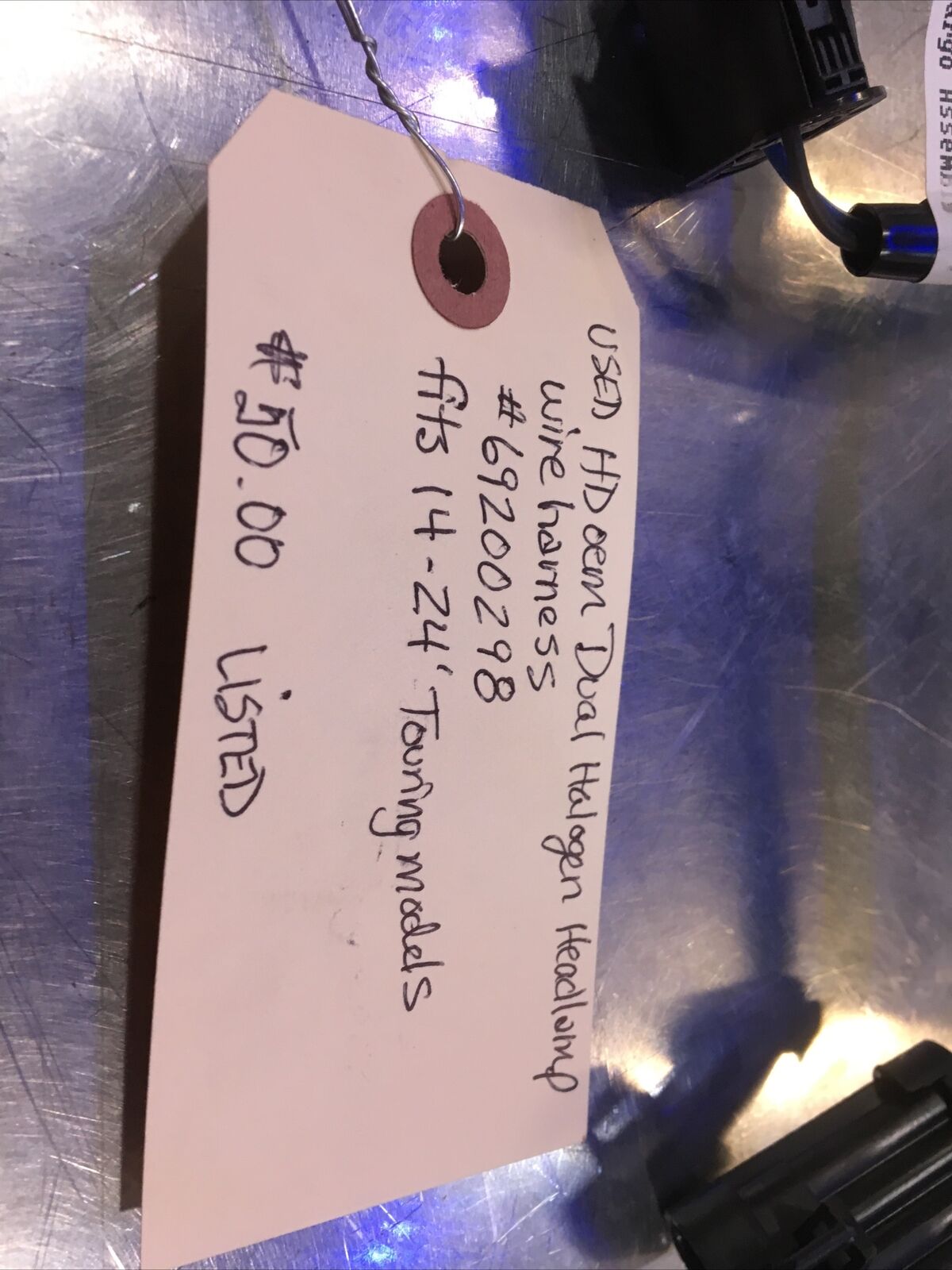 Harley Davidson oem Dual Halogen Headlamp Wire Harness #69200298. Condition is used. Fits 14-24’ Touring models buyer is responsible for fitment and applications
