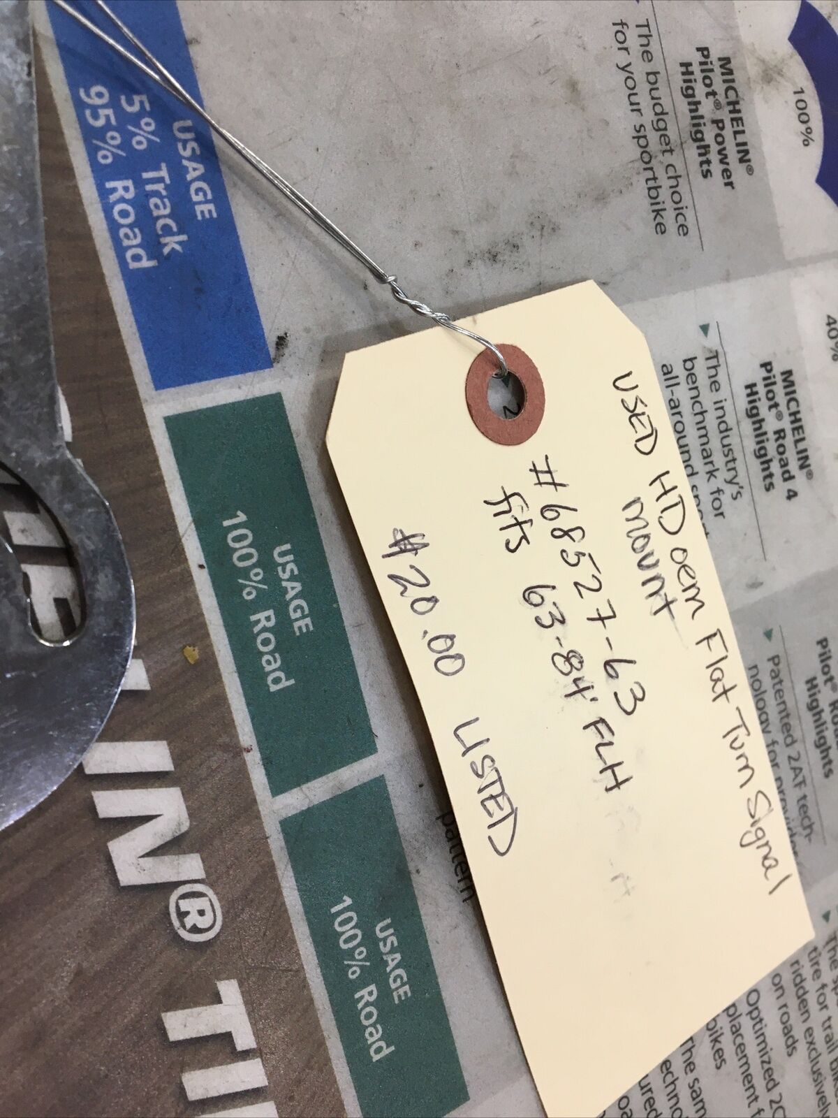 Harley Davidson oem Flat Turn Signal Mount #68527-63. Condition is used. Fits 63-84’ FLH models buyer is responsible for fitment and applications