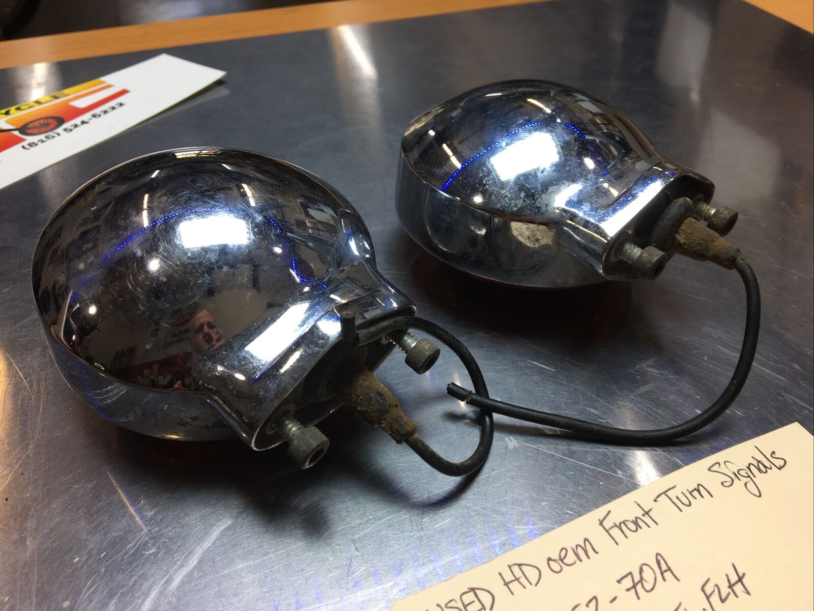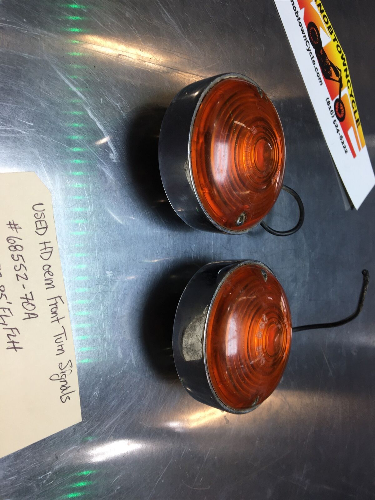 Harley Davidson oem Front Turn Signals #68552-70A. Condition is used. Fits 83-85’ FL, FLH models buyer is responsible for fitment and applications