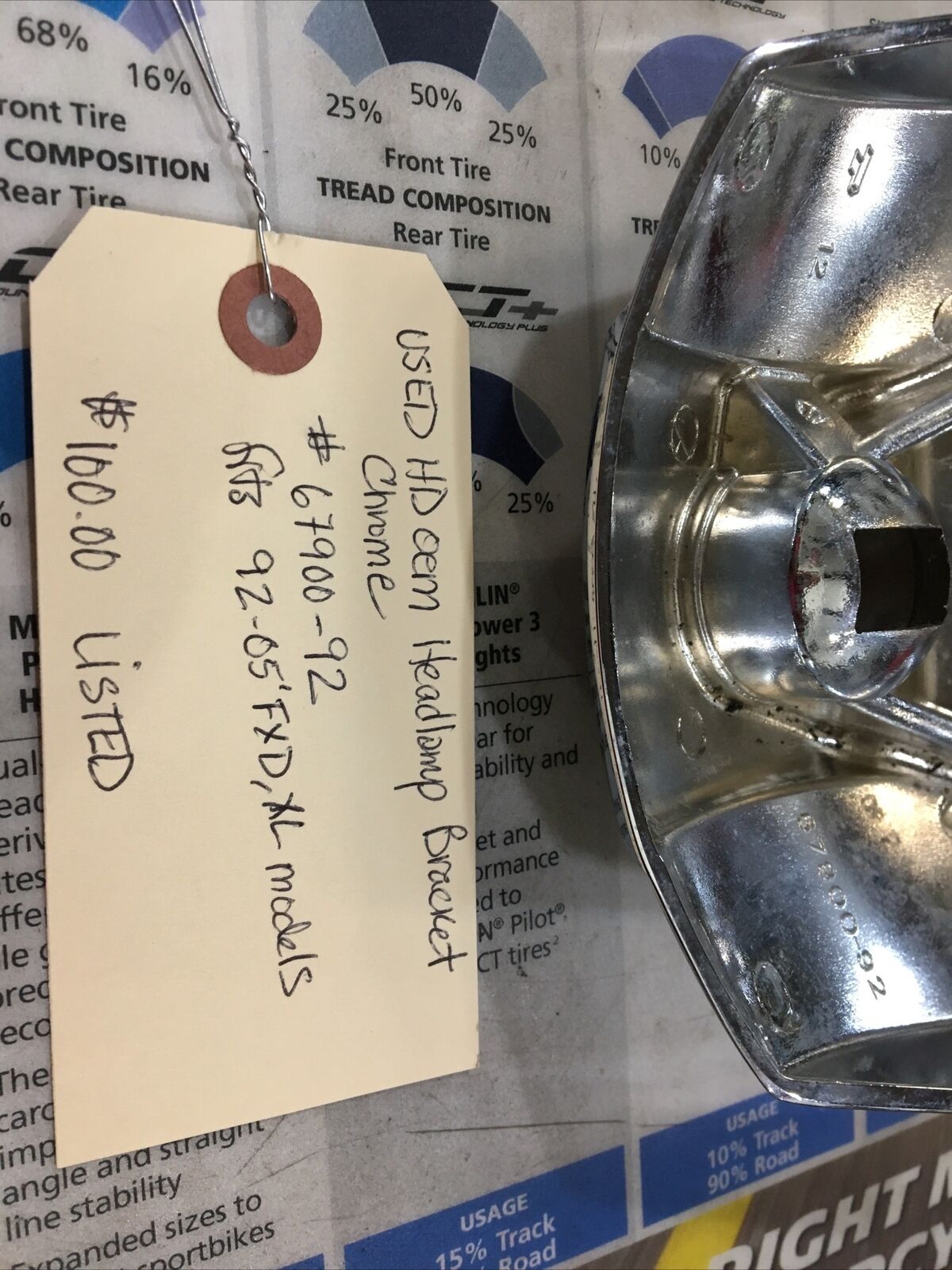 Harley Davidson oem Headlamp Bracket Chrome #67900-92. Condition is used. Fits 92-05’ FXD, XL models buyer is responsible for fitment and applications