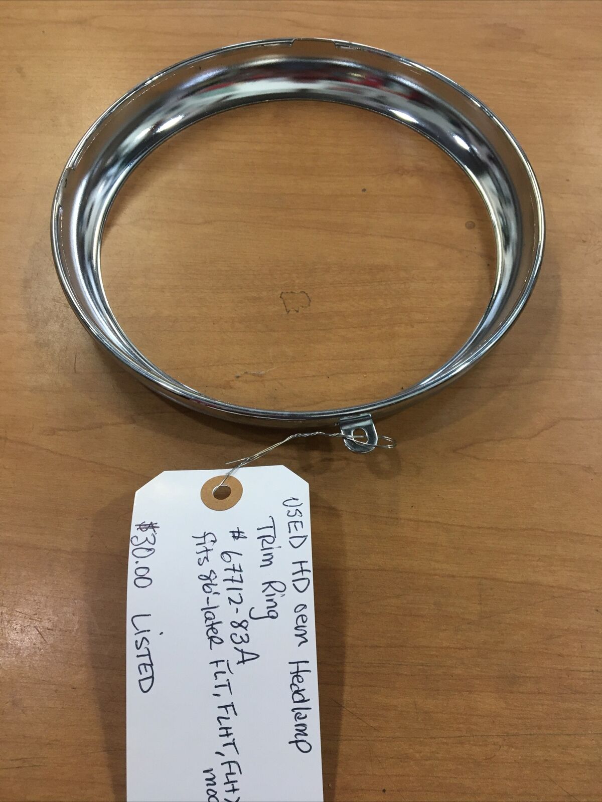 Harley Davidson Oem Headlamp Trim Ring #67712-83A. Condition is used. Fits 86’-later FLT, FLHT, FLHX models buyer is responsible for fitment and applications