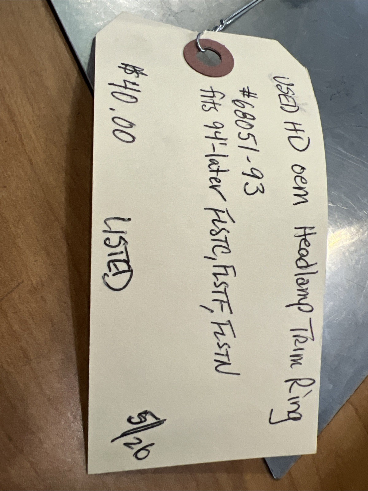 Harley Davidson oem Headlamp Trim Ring #68051-93. Condition is used. Fits 94’-later FLSTC, FLSTF, FLSTN models buyer is responsible for fitment and applications