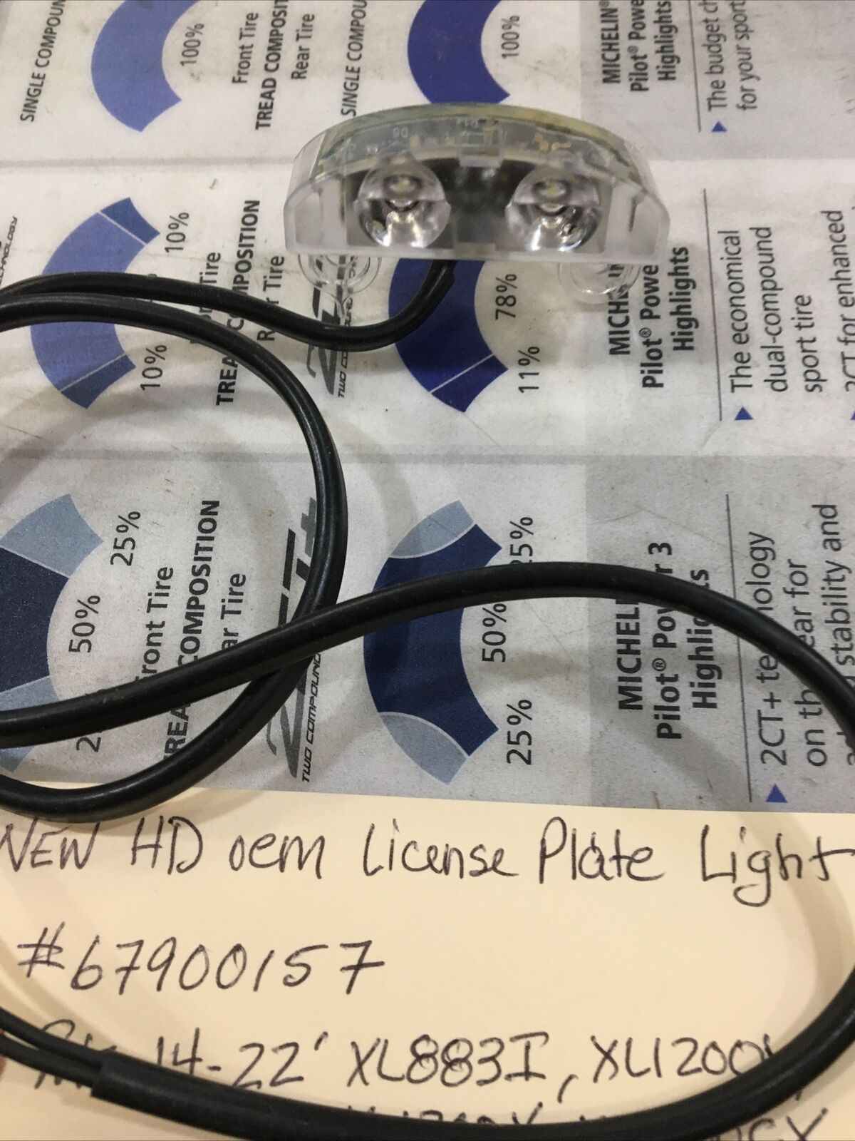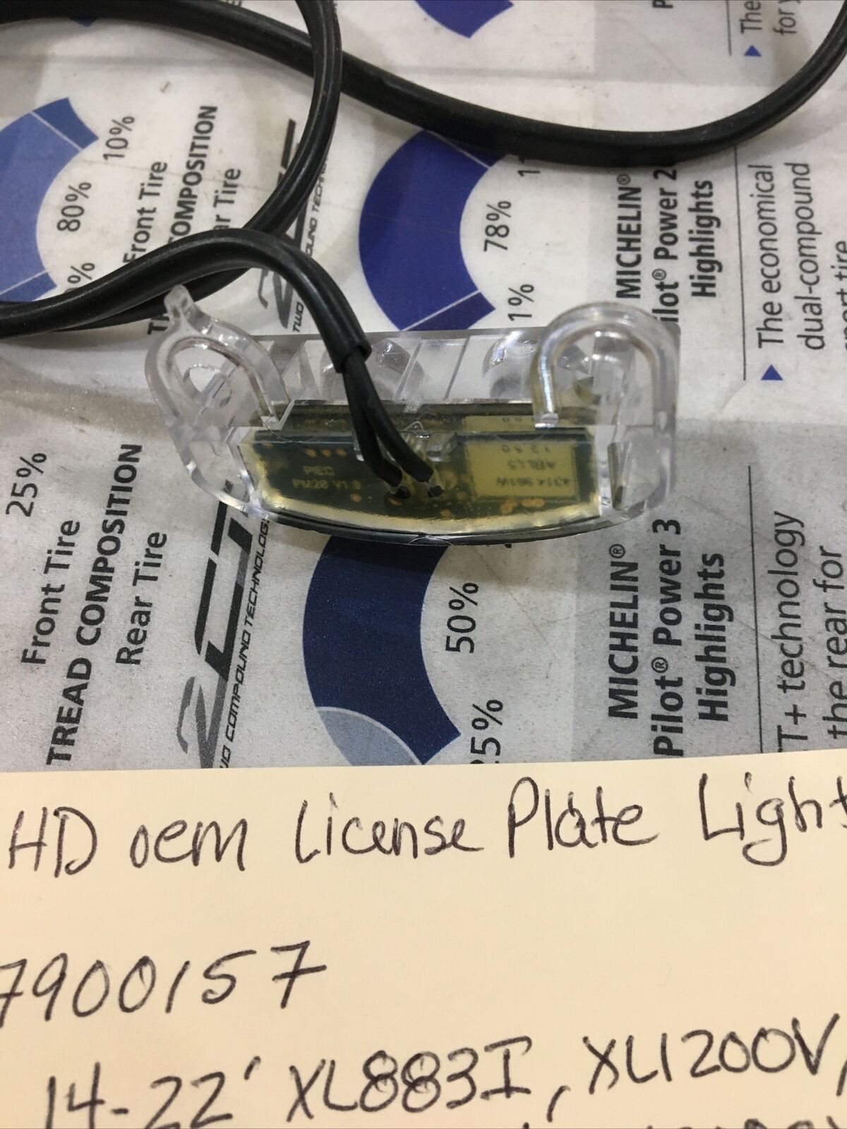 Harley Davidson oem License Plate Light #67900157. Condition is new. Fits 14-22’ XL883I, XL1200V, XL1200X, XL1200CX models buyer is responsible for fitment and applications