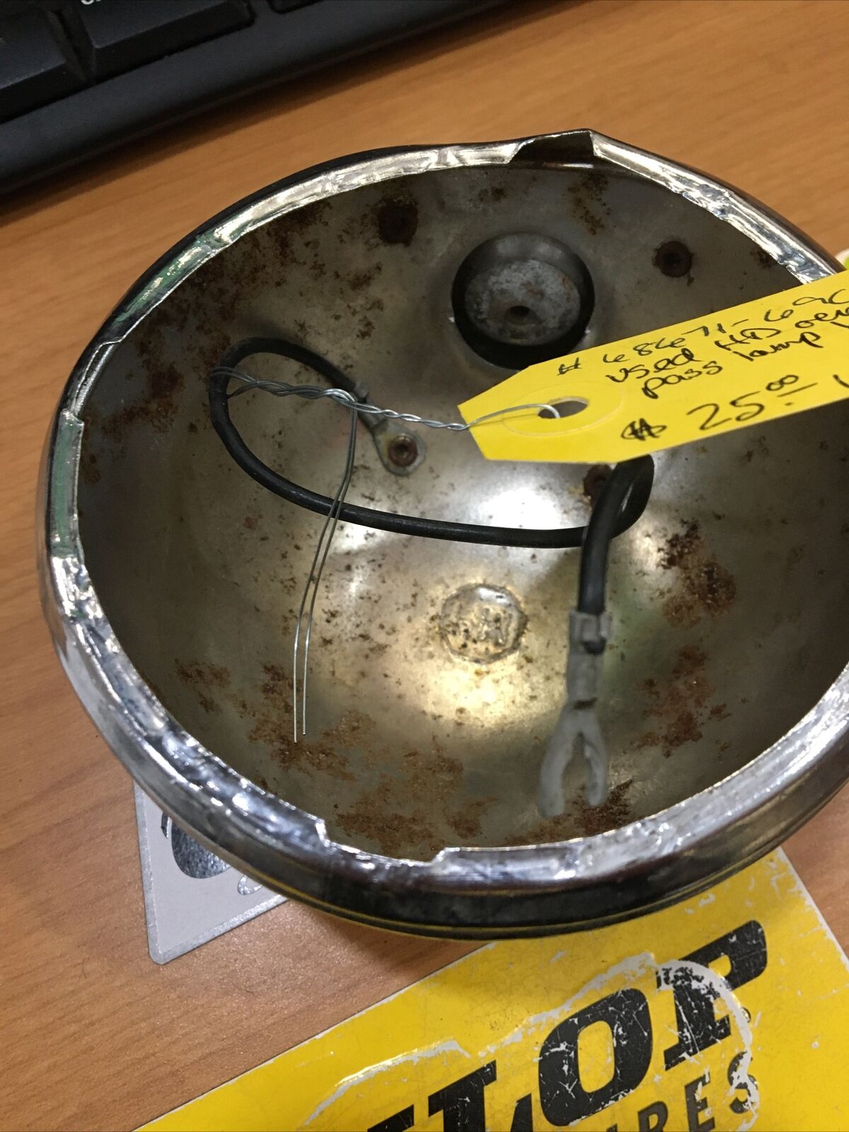 Harley Davidson OEM passing lamp bucket #68671-69C. Condition is used. No trim ring or bulb and outside ring is bent up as seen in pictures.Fits Harley Davidson models with Auxiliary passing lamps buyer is responsible for fitment and applications no returns