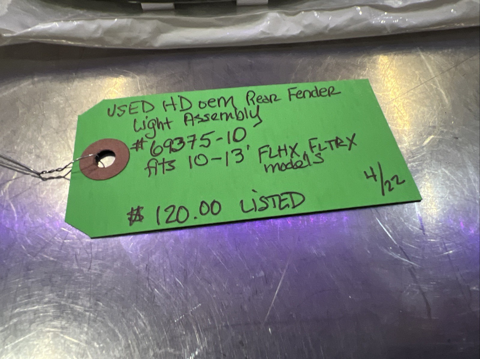 Harley Davidson oem Rear Fender Light. Assembly #69375-10. Condition is used. Fits 10-13’ FLHX, FLTRX models buyer is responsible for fitment and applications
