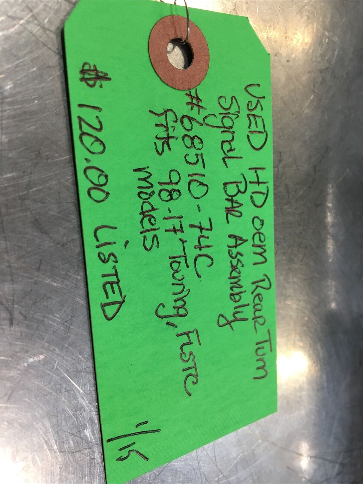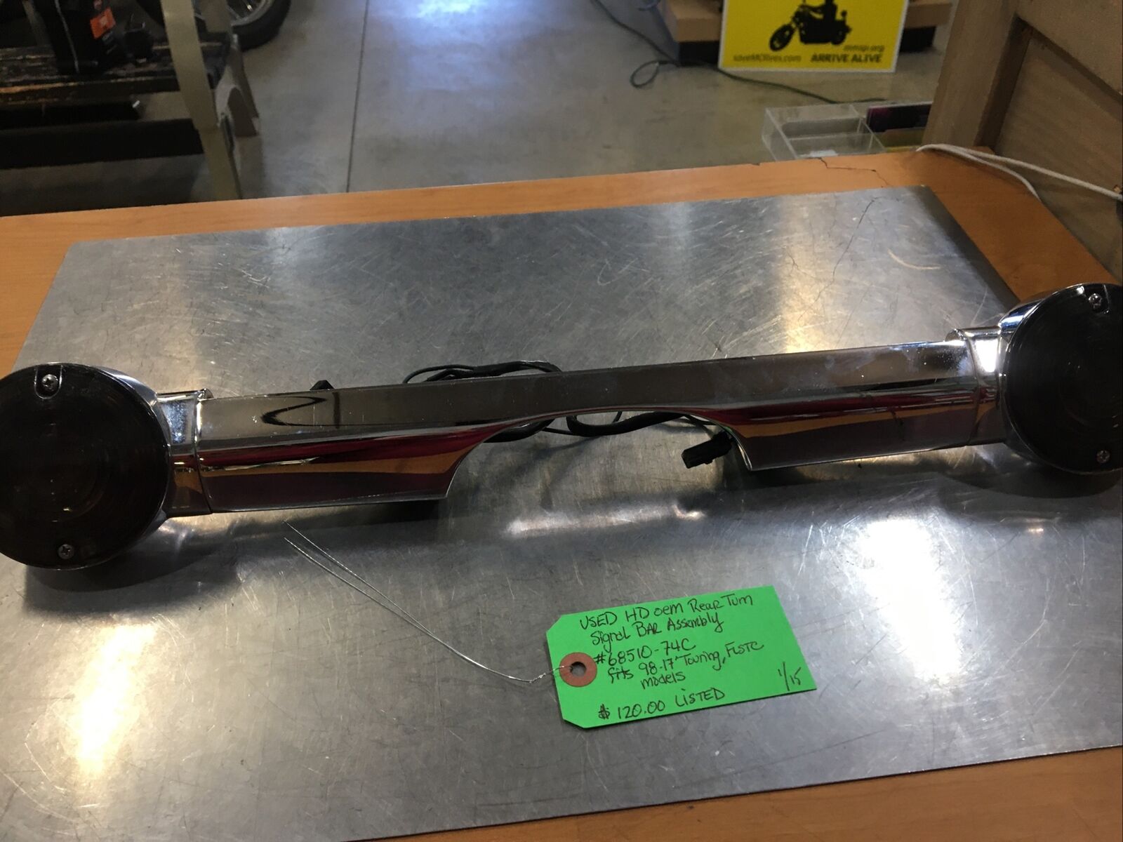 Harley Davidson oem Rear Turn Signal Bar Assembly #68510-74C. Condition is used. Fits 98-17’ Touring and FLSTC models buyer is responsible for fitment and applications