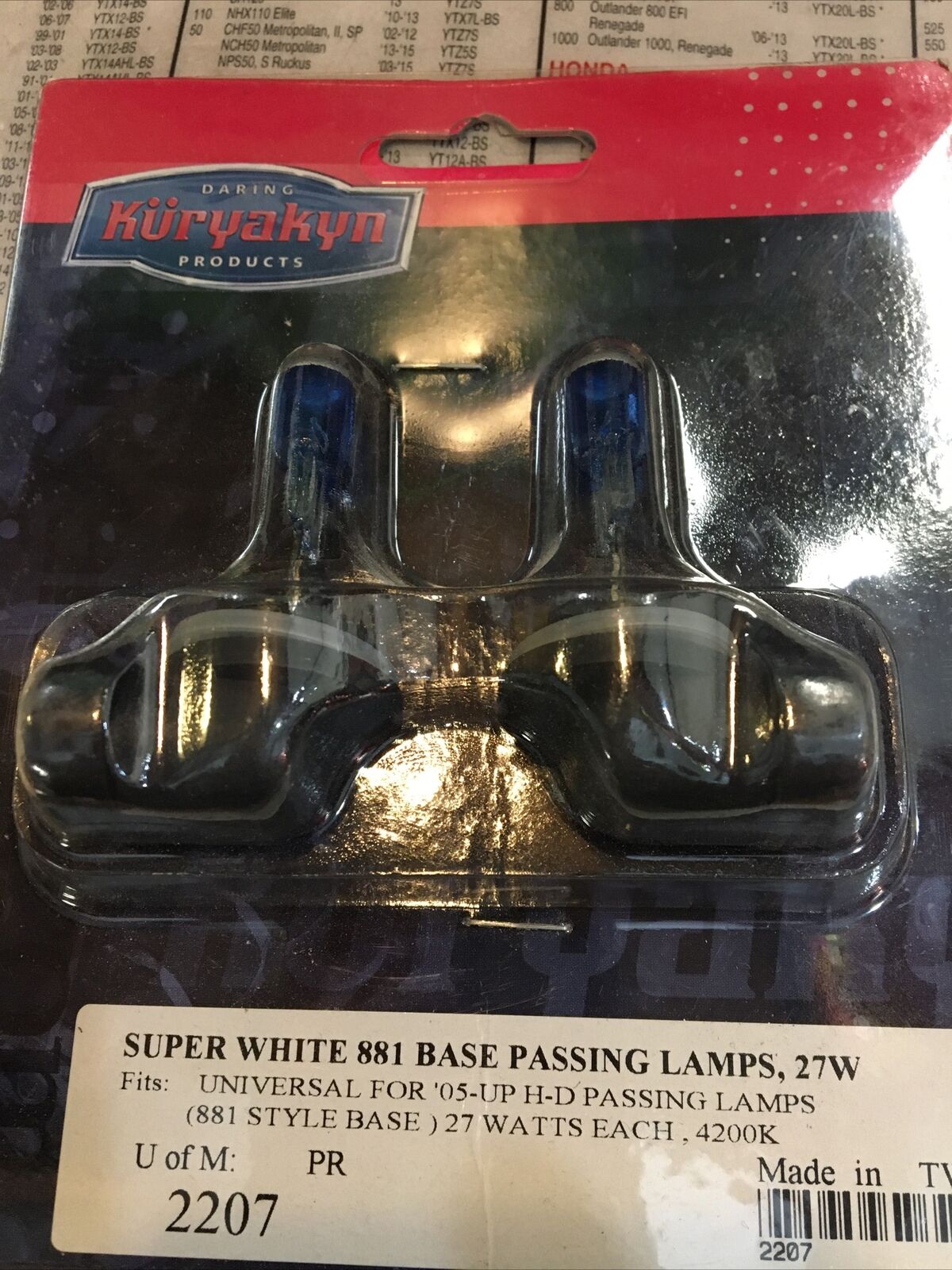 Kuryakyn Super White 881 Base Passing Lamp Bulbs #2207. Condition is “New”.universal for 05’-later Harley Davidson passing lamps buyer is responsible for fitment and applications no returns