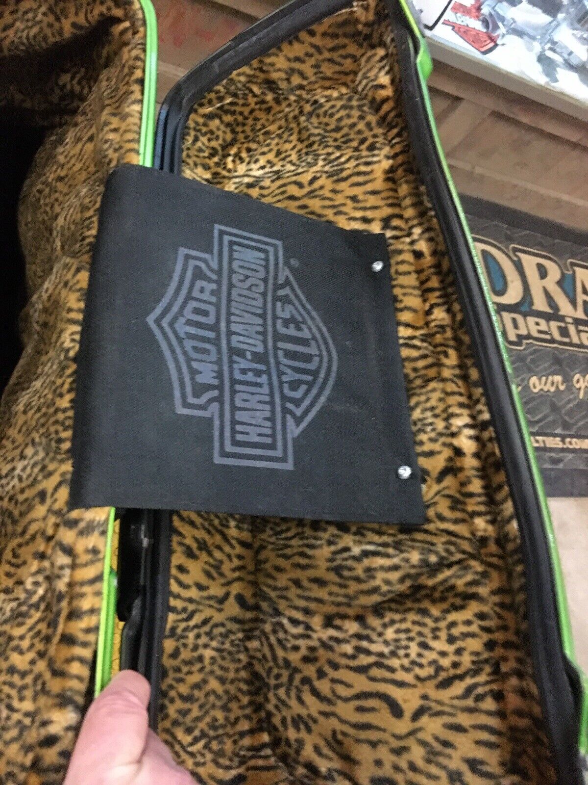 6” Extended Saddlebag LH Touring. Condition is Used.with leopard print interior fits 2014’-earlier FLHX models buyer is responsible for fitment and applications