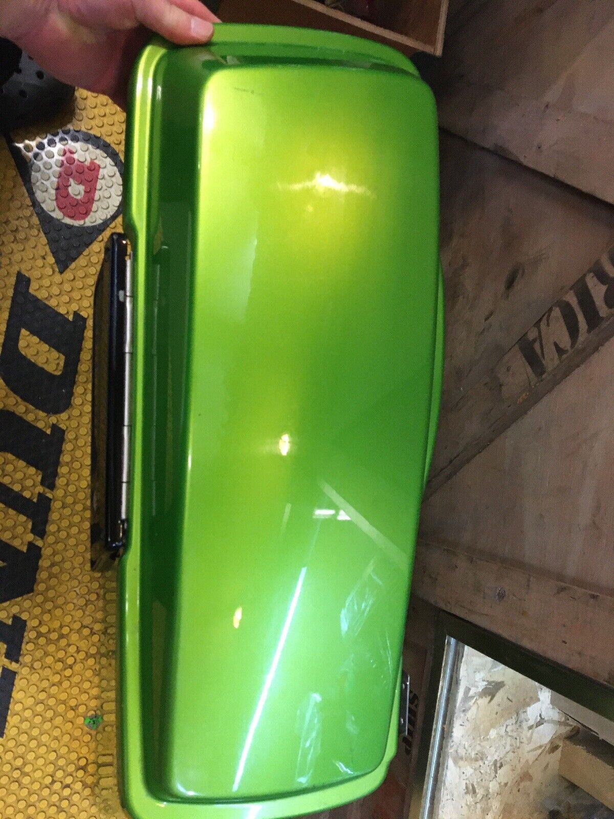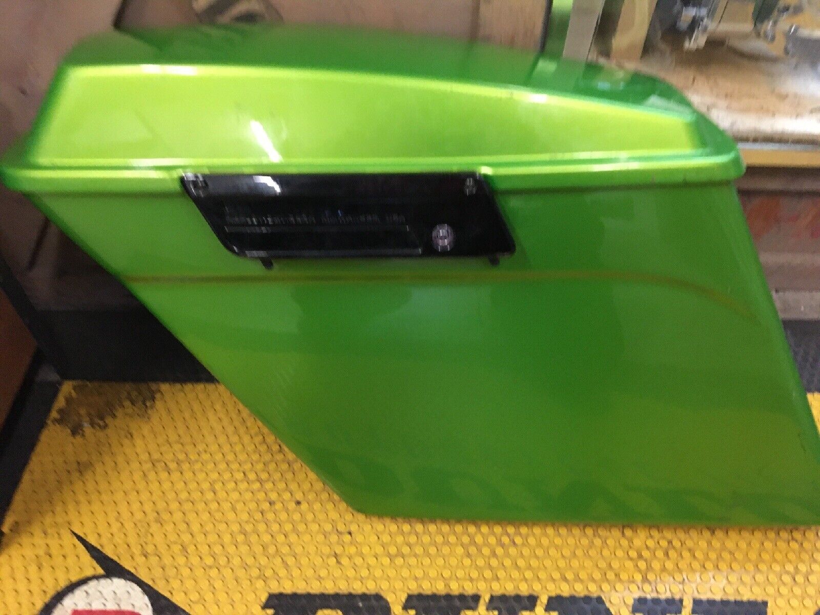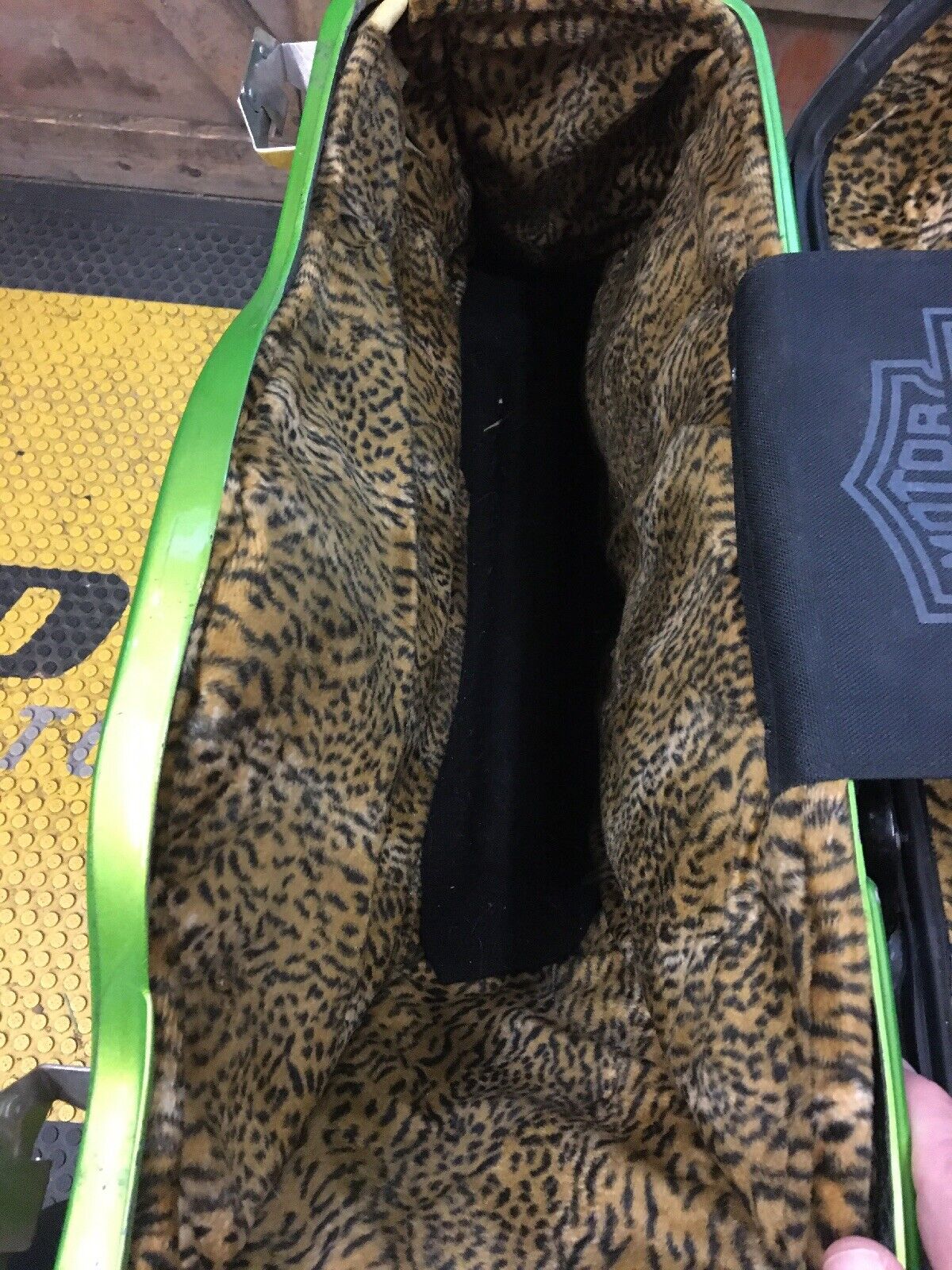 The 6” Extended Saddlebag LH Touring is a must-have accessory for any avid motorcycle rider looking to add both style and functionality to their bike. This unbranded saddlebag features a custom lime green pearl exterior that is sure to turn heads wherever you go. The unique leopard print interior adds a touch of personality and flair to your ride, making it stand out from the rest.