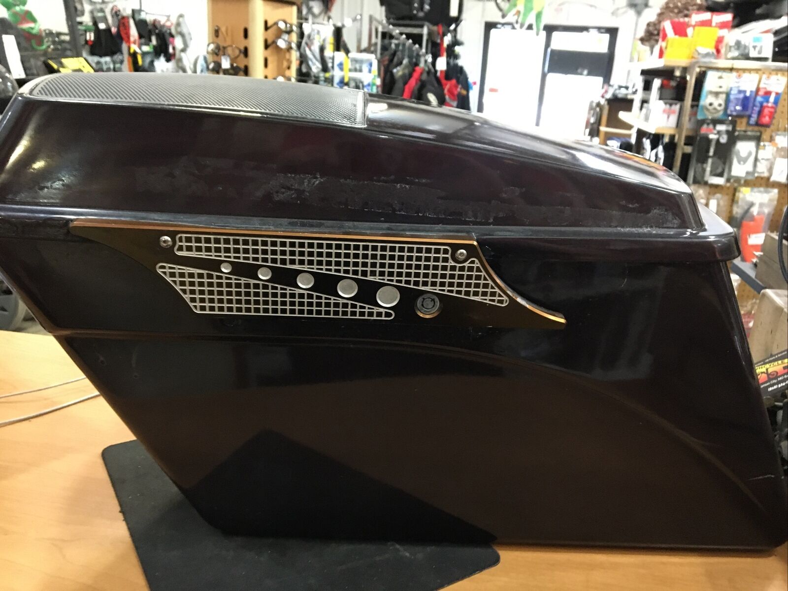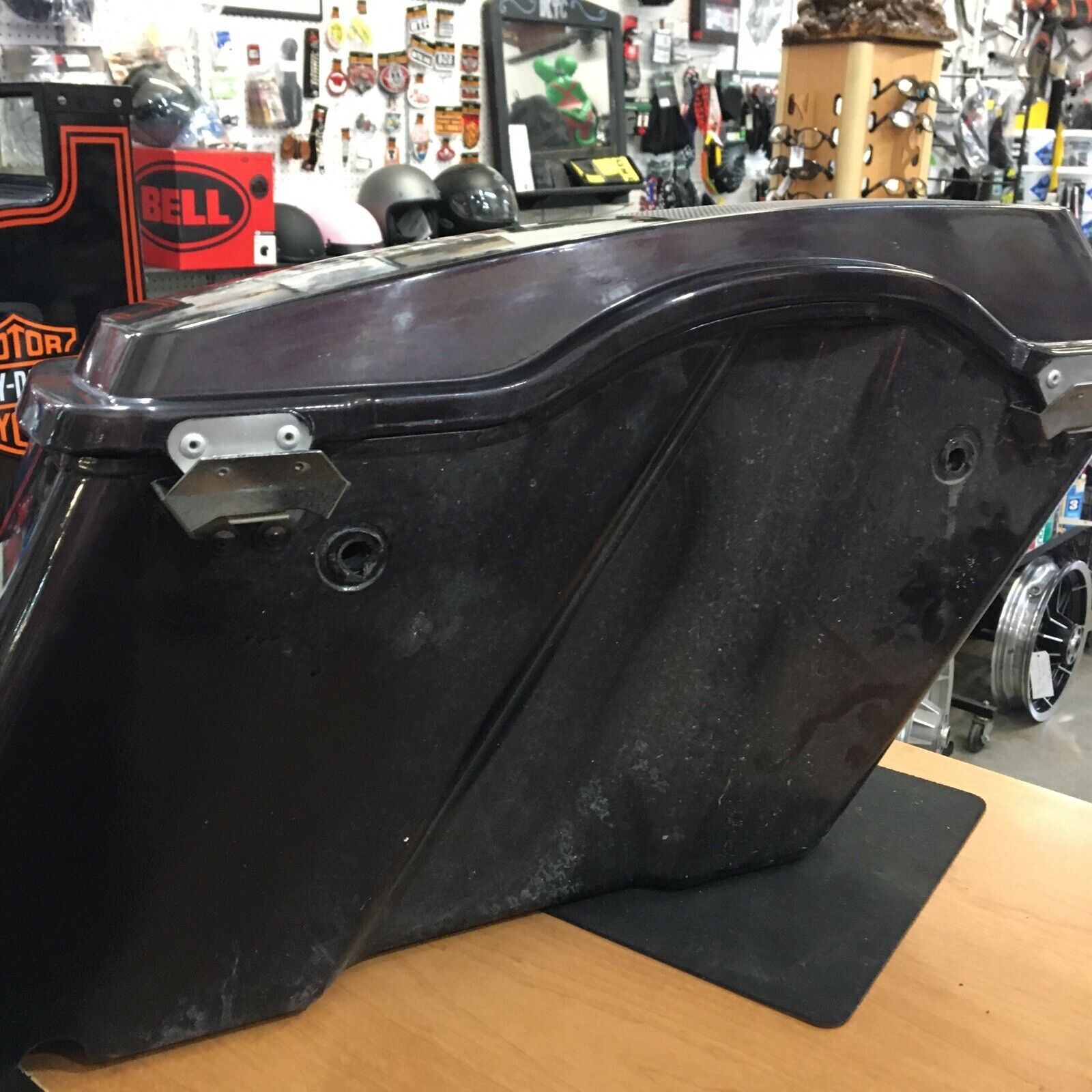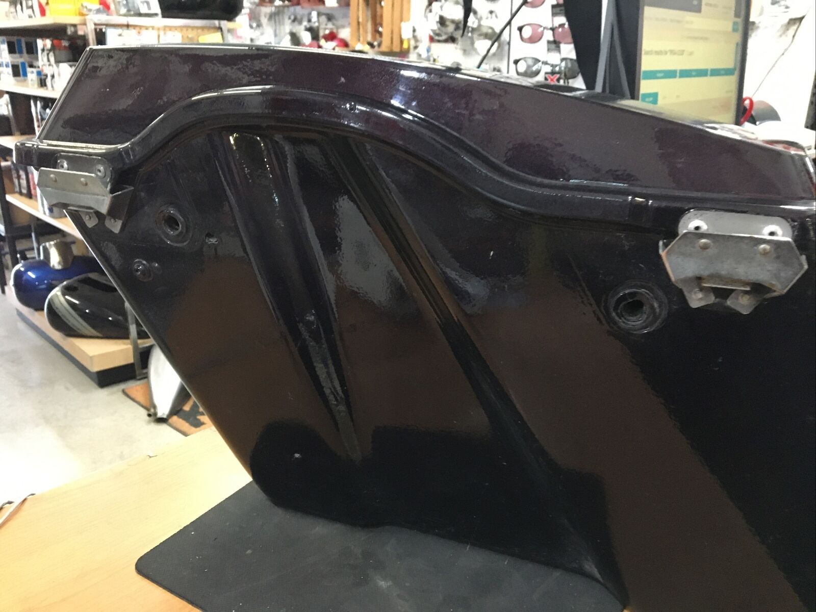 Condition is used as seen in pictures. Has scratches and scuffs and Bags have a hole where wires from speakers are coming out.Purple metallic with Polk Audio 6 x 9” speakers no attaching hardware or keys for latches fits Harley Davidson 96-13’ Touring models buyer is responsible for fitment and applications