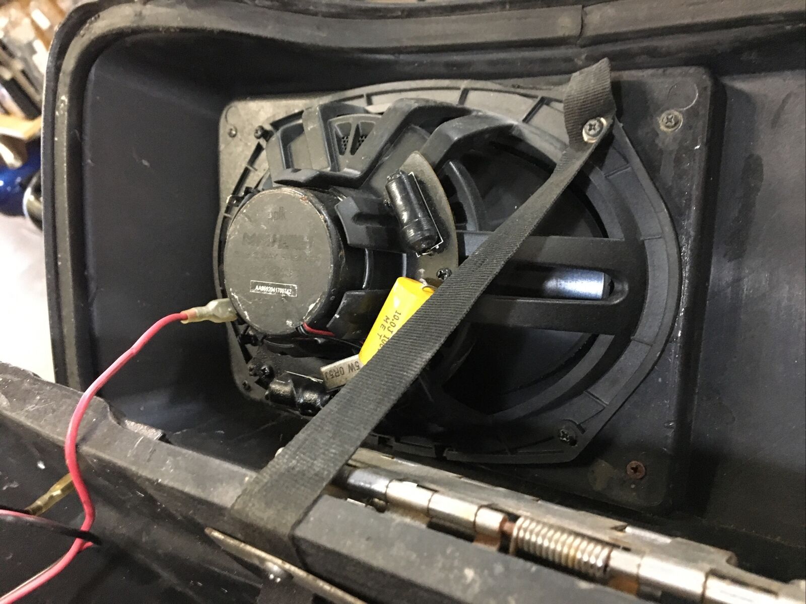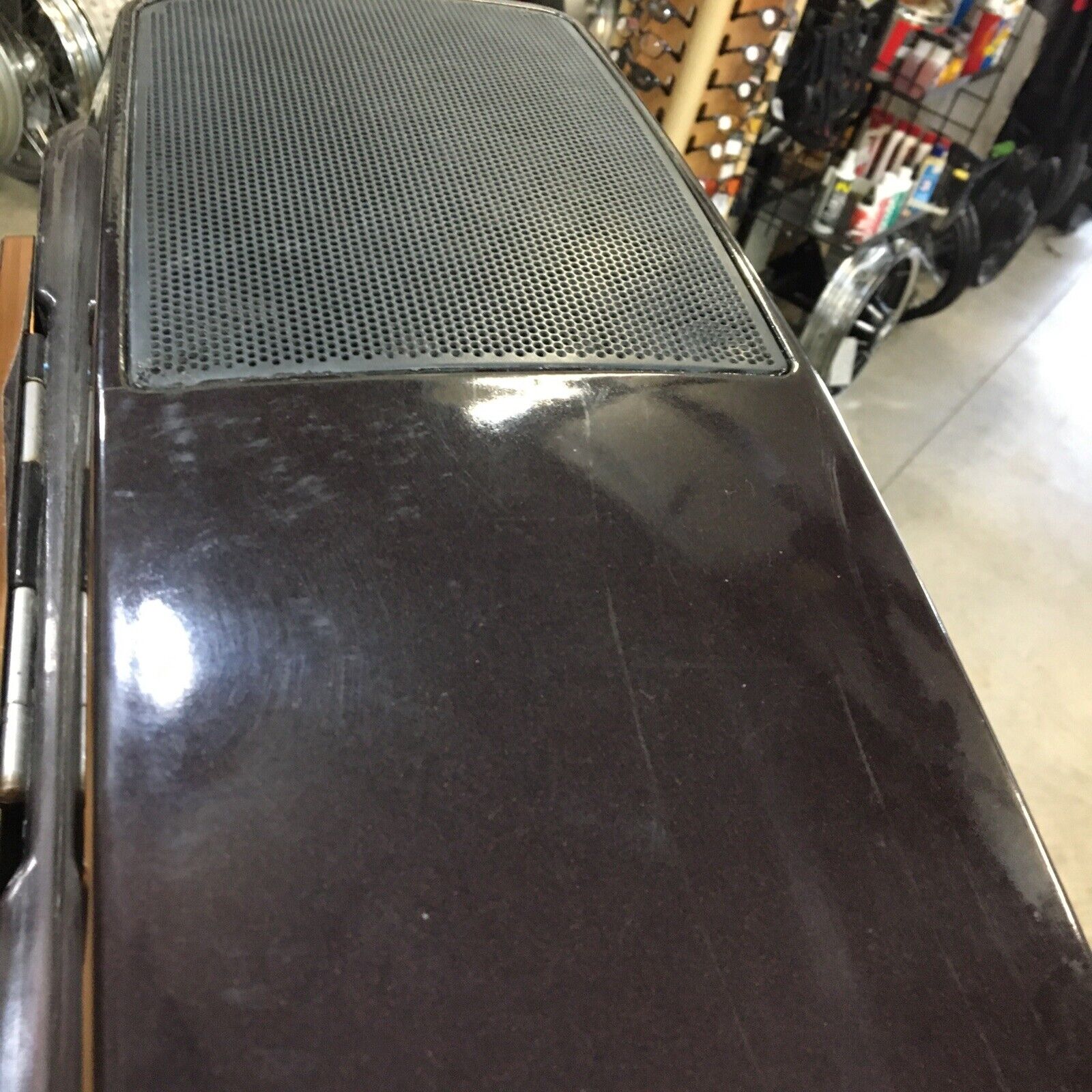 Despite being used, these saddlebags are still in good condition, as seen in the pictures provided. While they may have some scratches and scuffs, the vibrant purple metallic color adds a touch of style to your bike. The bags even have a hole where wires from the speakers come out, ensuring easy installation and connection to your audio system.