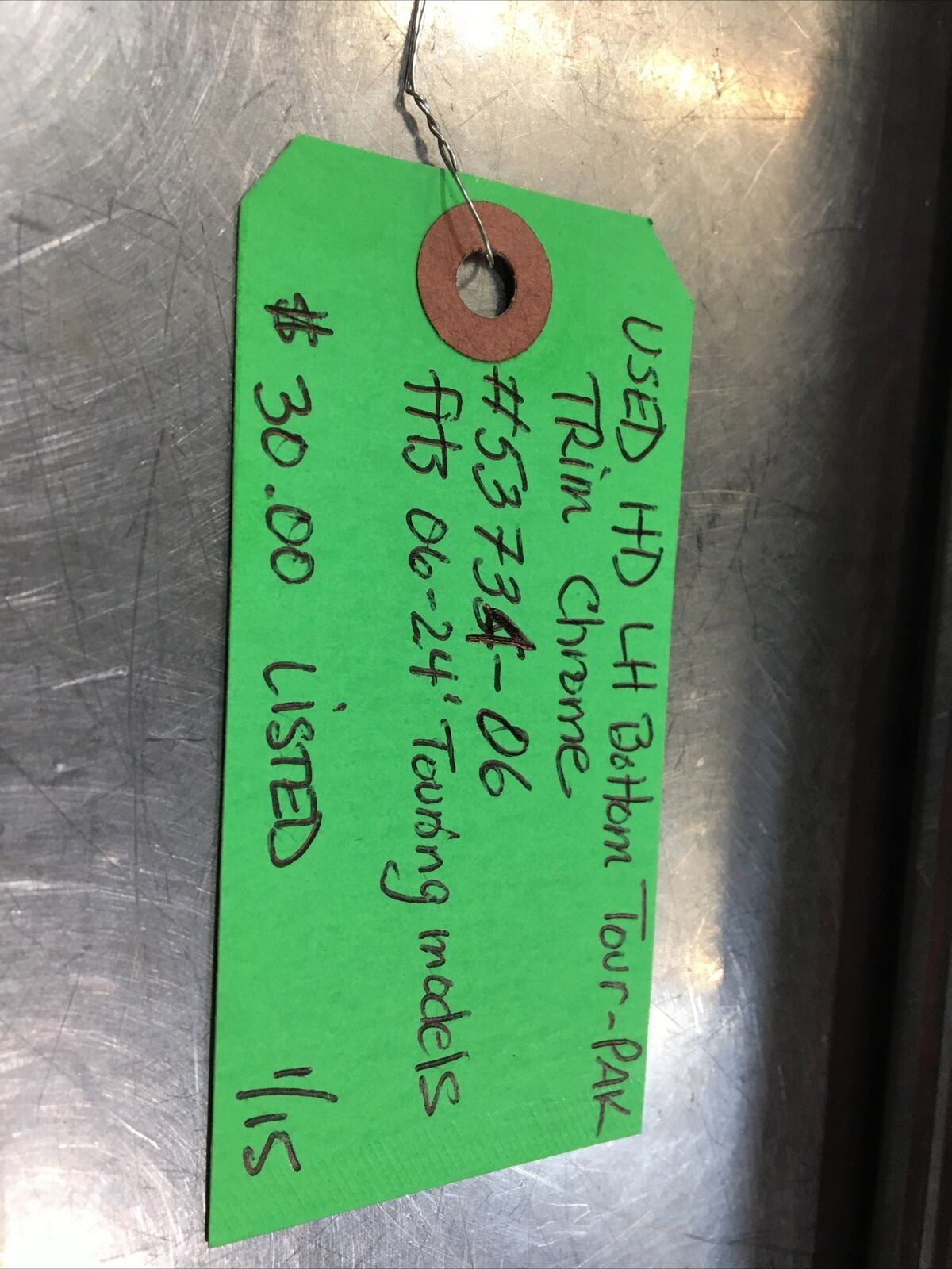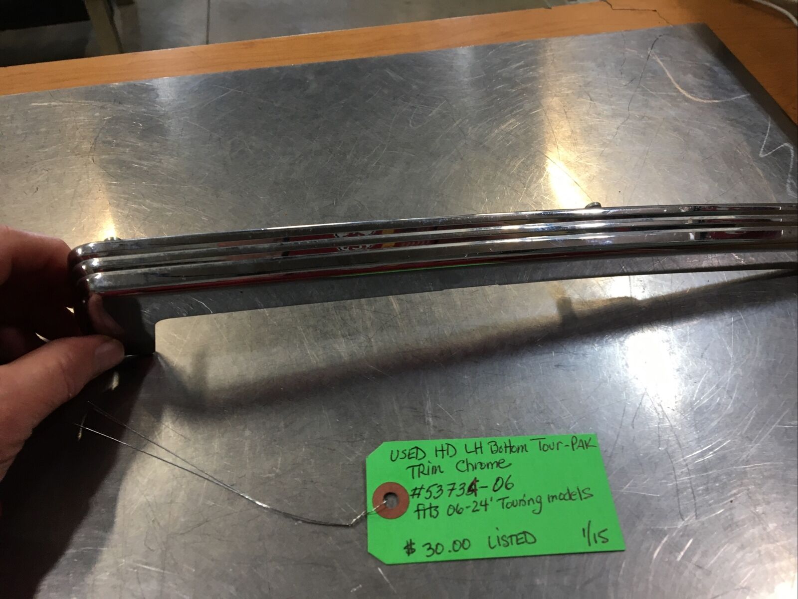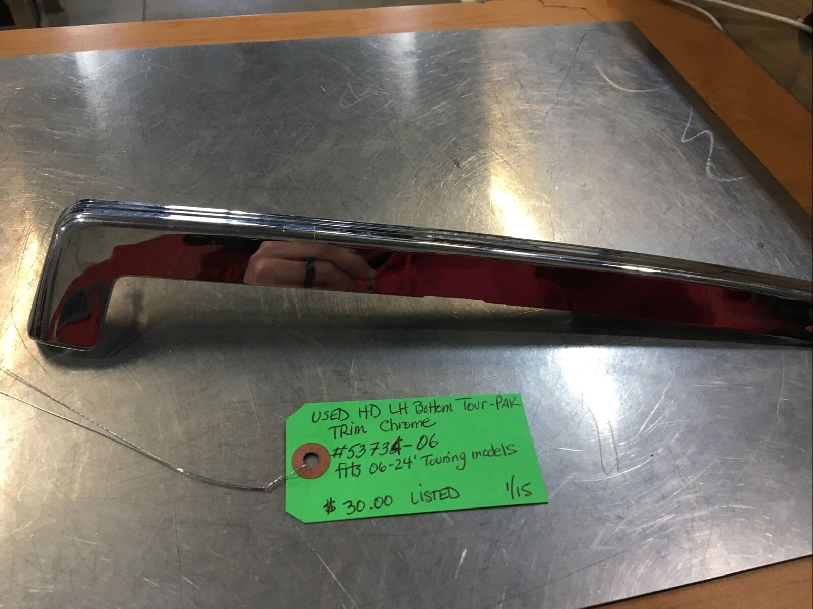 Harley Davidson LH Bottom Tour-Pak Trim Chrome #53734-06. Condition is used. Fits 06-24’ Touring models buyer is responsible for fitment and applications