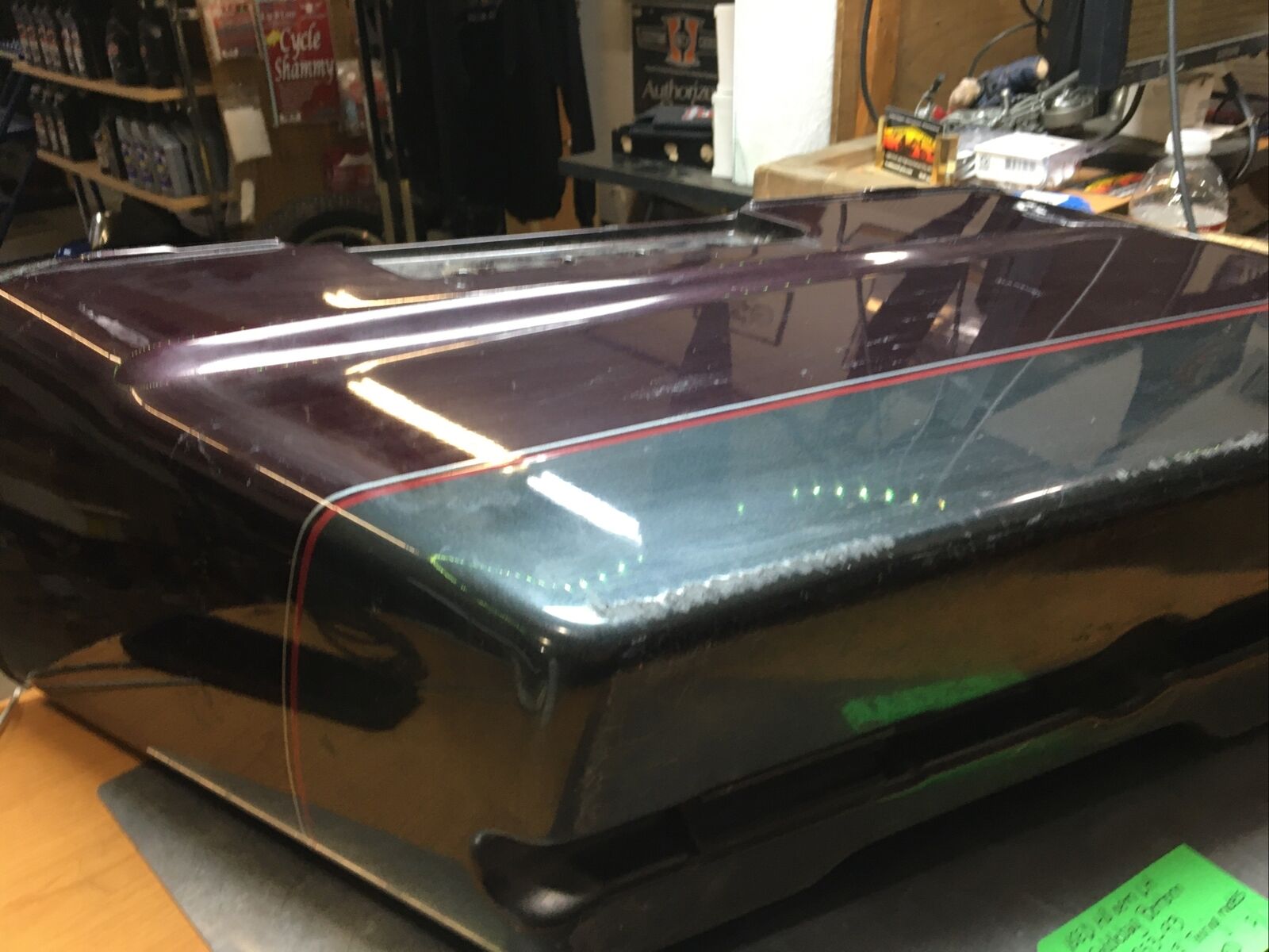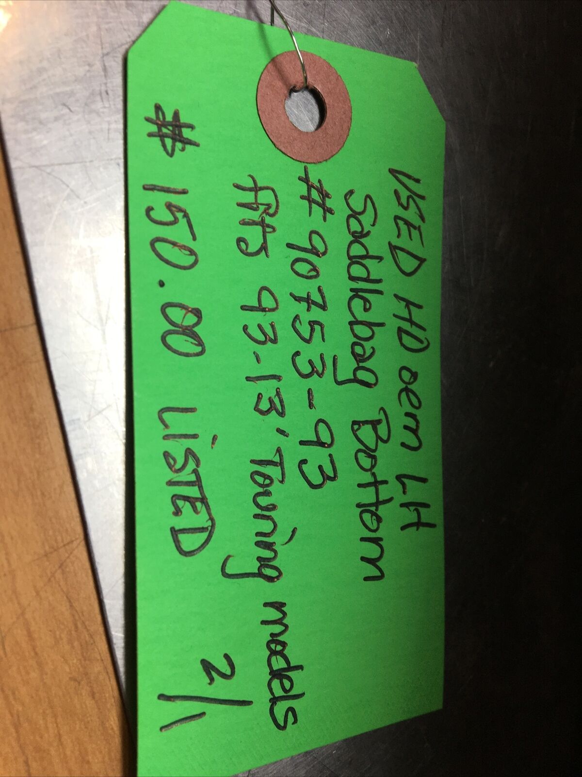 Harley Davidson oem LH Saddlebag Bottom #90753-93. Condition is used. Has scratches and scuffs. Fits 93-13’ Touring models buyer is responsible for fitment and applications