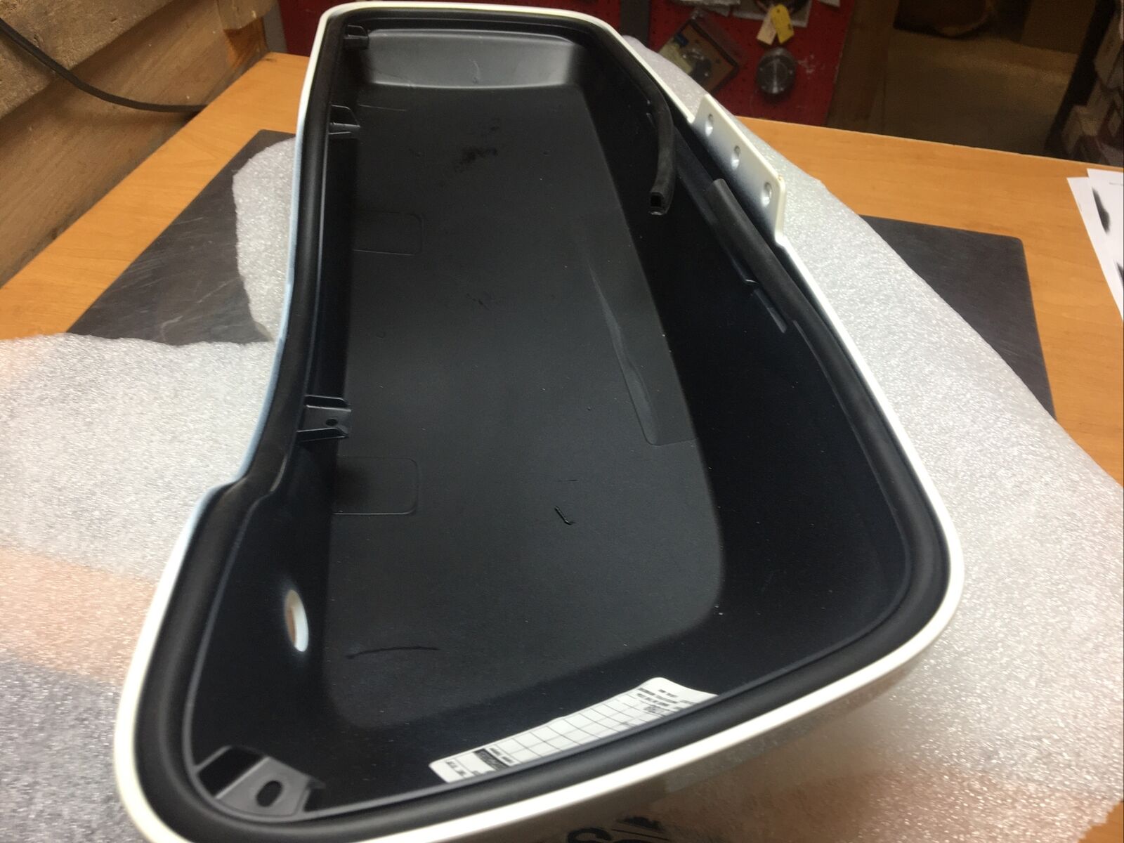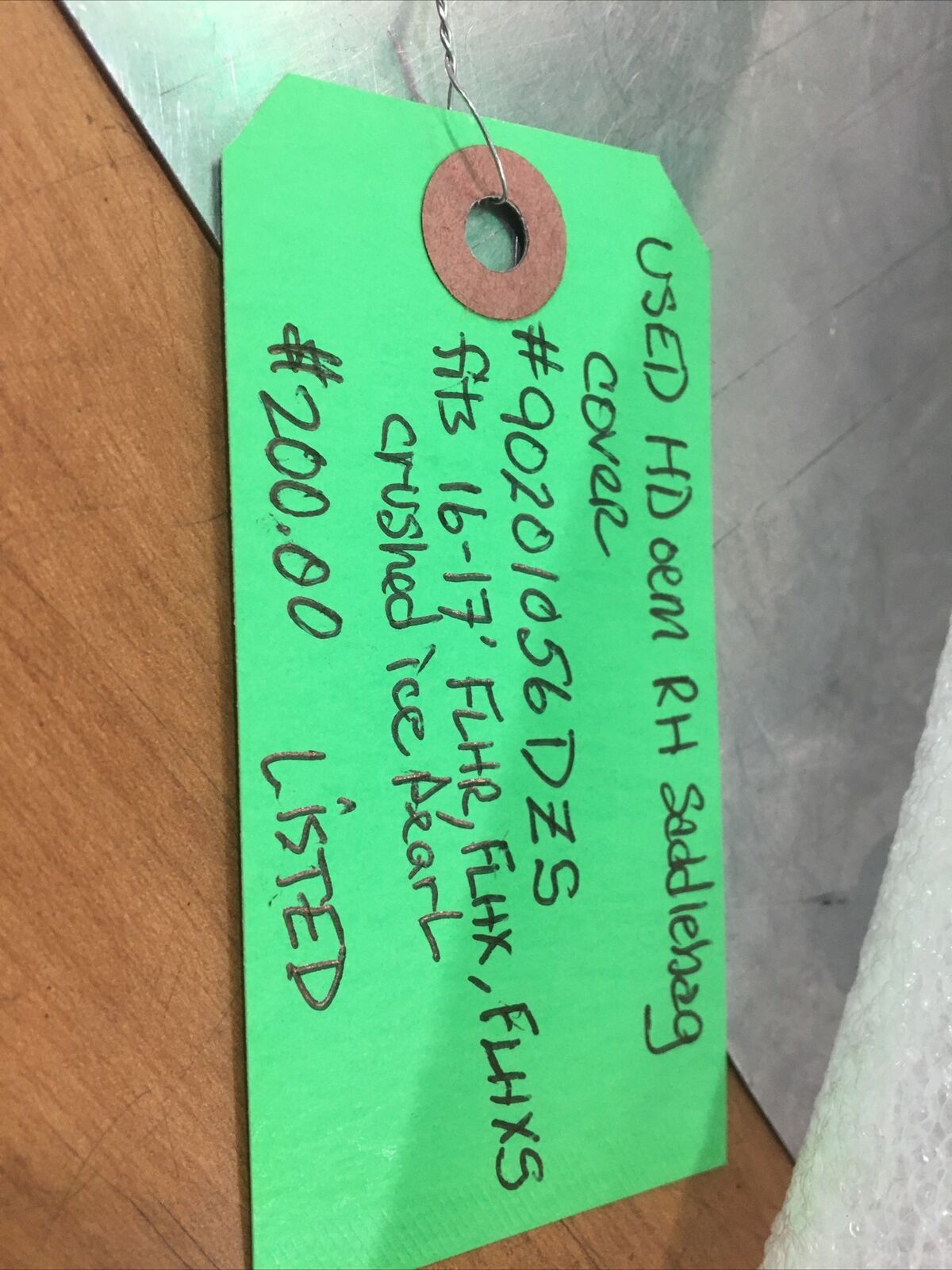 Harley Davidson oem RH Saddlebag Cover #90201056DZS. Condition is used. Has a chip and a little rash as seen in pictures. Fits 16-17’ FLHR, FLHX, FLHXS crushed ice Pearl buyer is responsible for fitment and applications