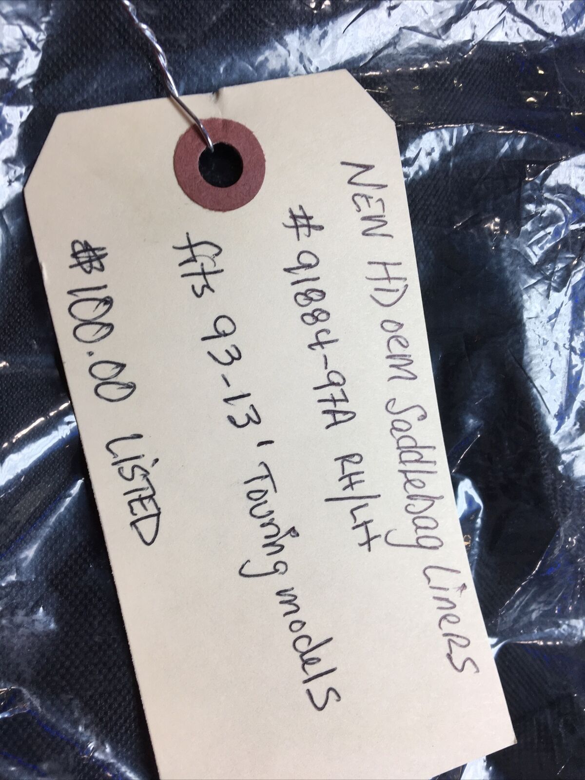 Harley Davidson oem Saddlebag Liners. Condition is new. Fits 93-13’ Touring models with Fiberglass saddlebags. Buyer is responsible for fitment and applications