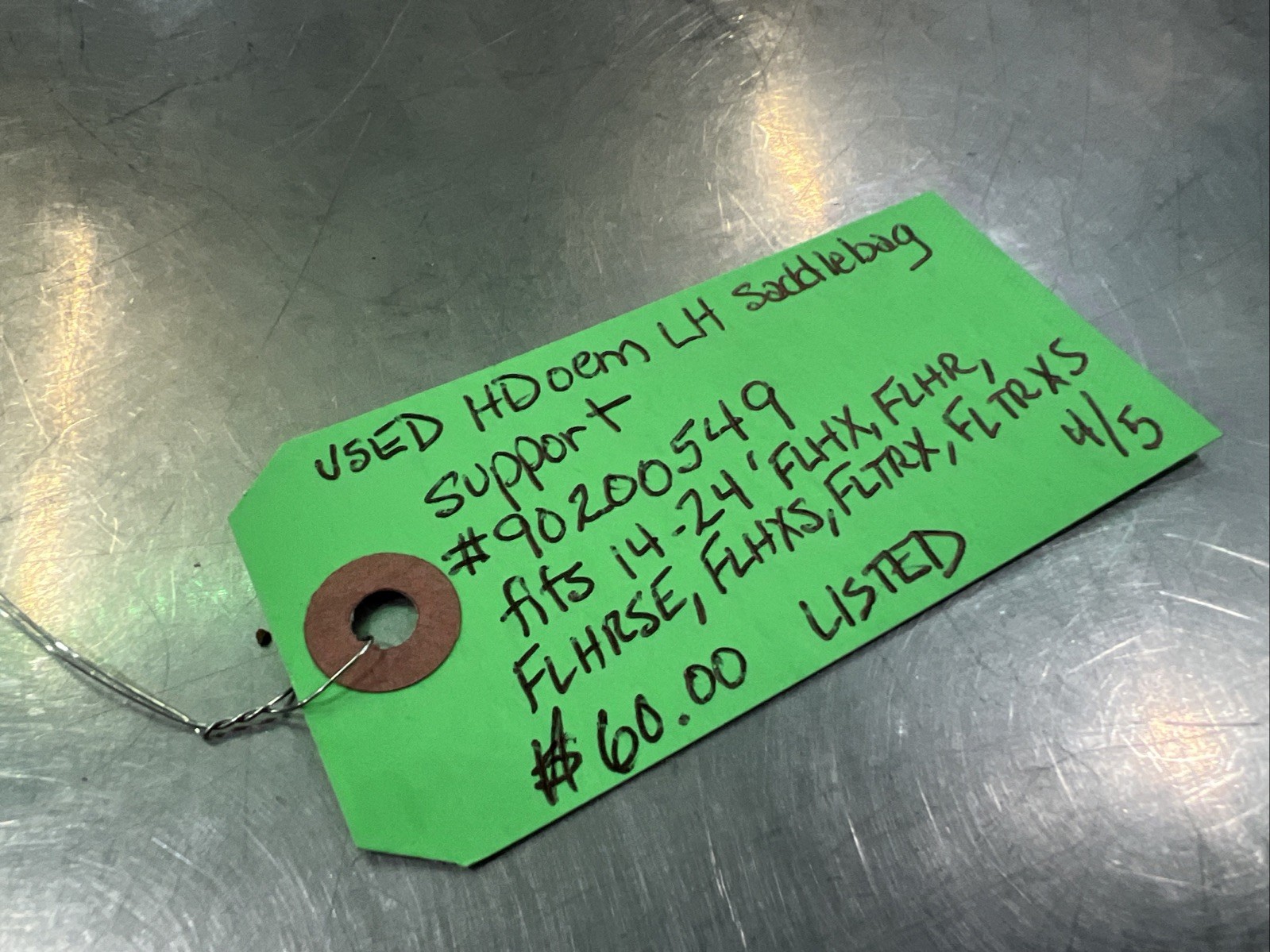 Harley Davidson oem LH Saddlebag Support #90200549. Condition is used. Fits 14-24’ FLHX, FLHR, FLHRSE. FLHXS, FLTRX, FLTRXS models buyer is responsible for fitment and applications