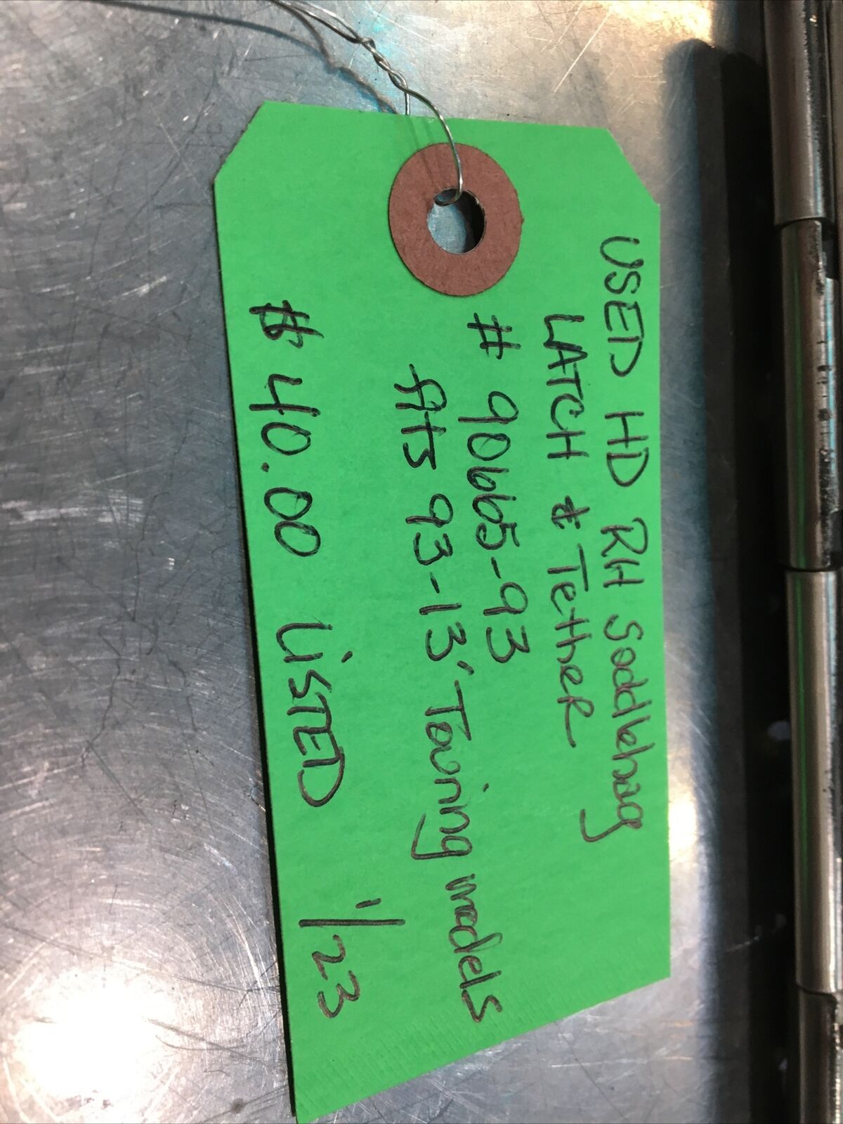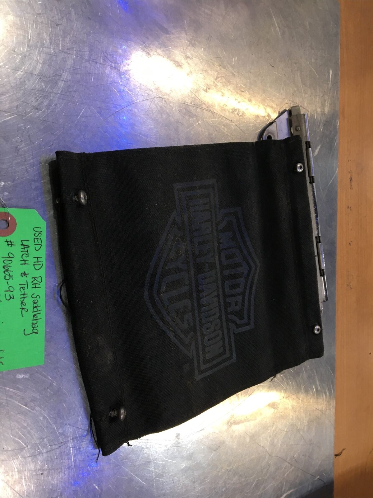 Harley Davidson RH Saddlebag Latch & Tether #90665-93. Condition is used. Fits 93-13’ Touring models buyer is responsible for fitment and applications