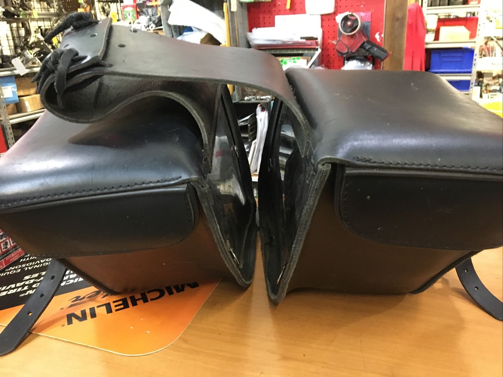 Leather Slant Style Throw Over Saddlebags With Pouches.