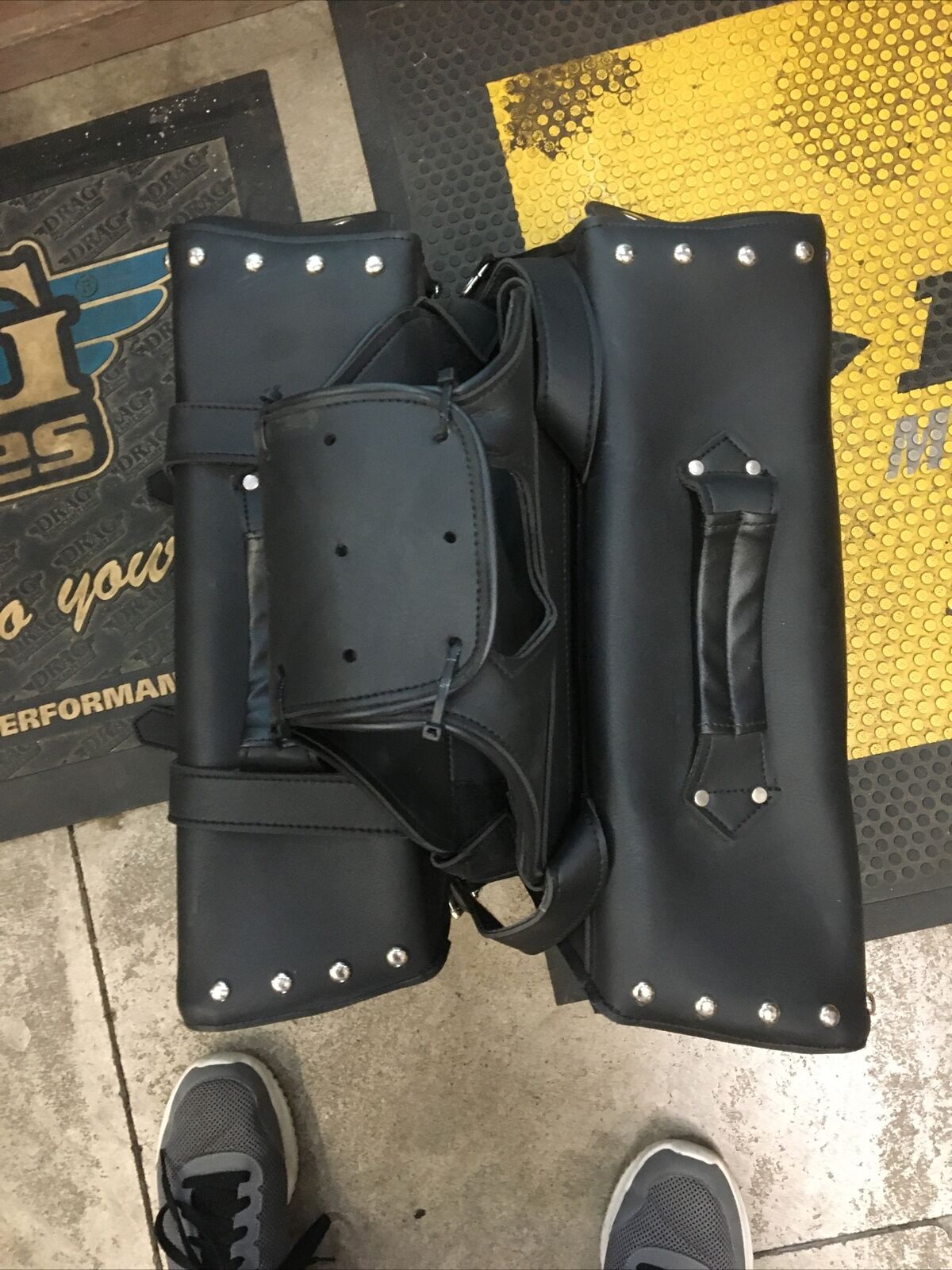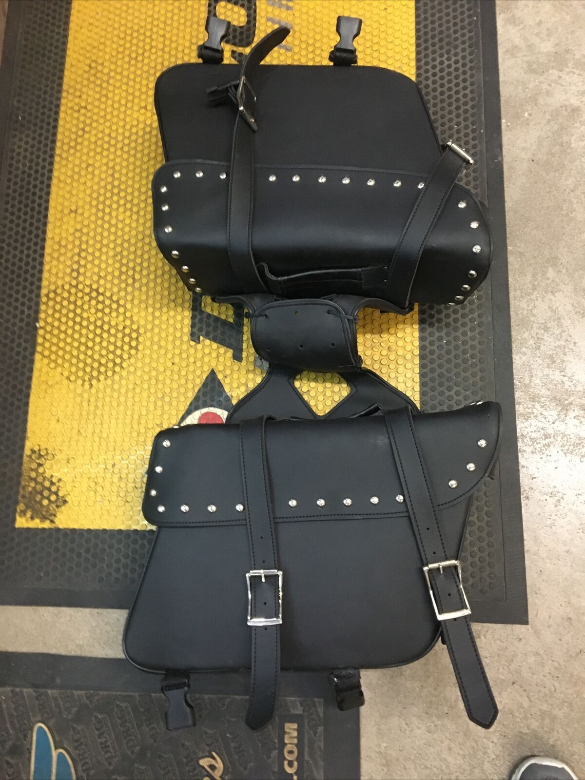 Leather Throw over saddlebags. Condition is used. Buyer would need saddlebag supports to use these buyer is responsible for fitment and applications no returns