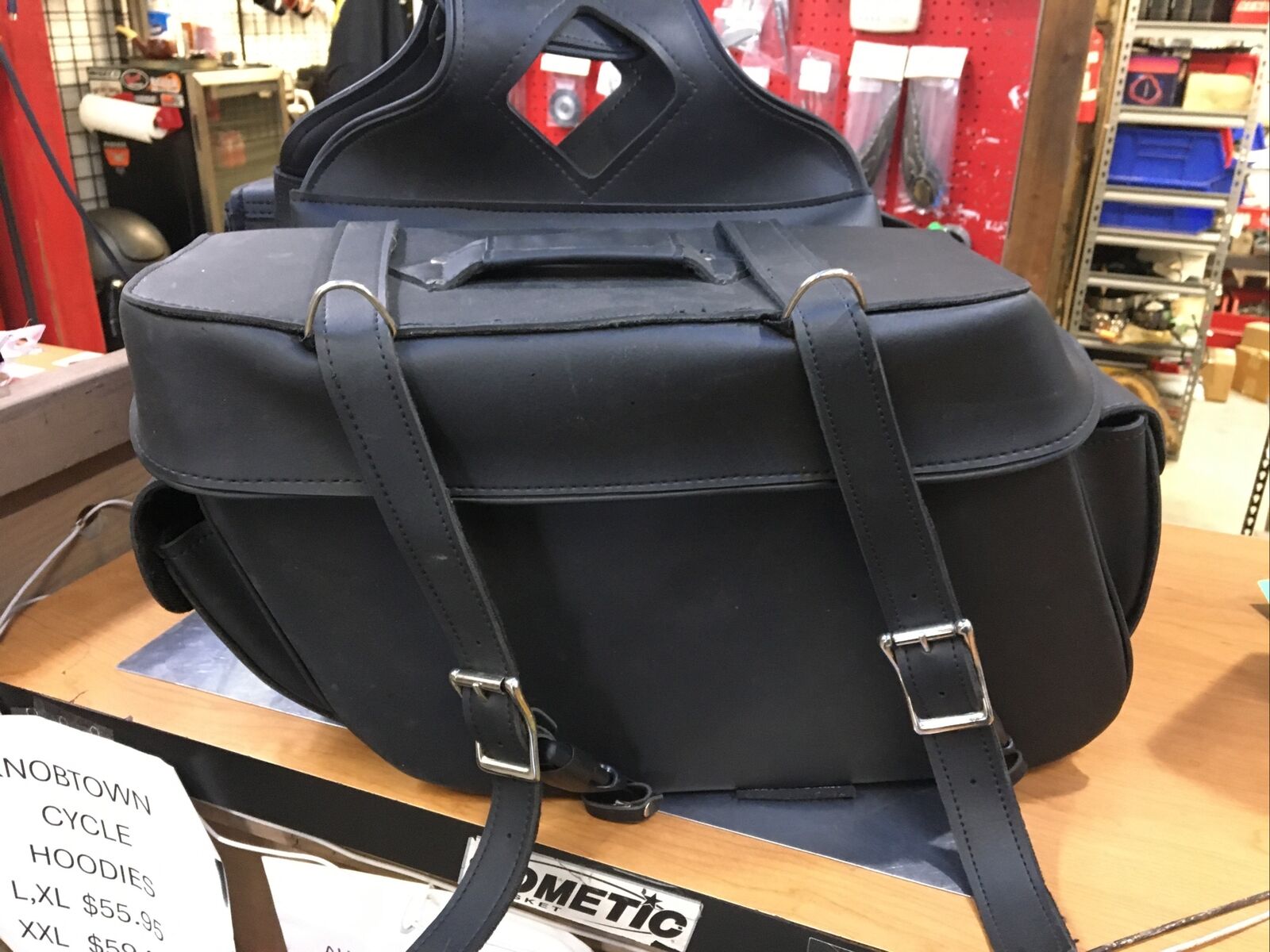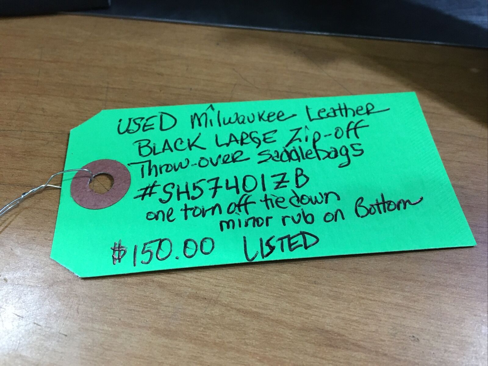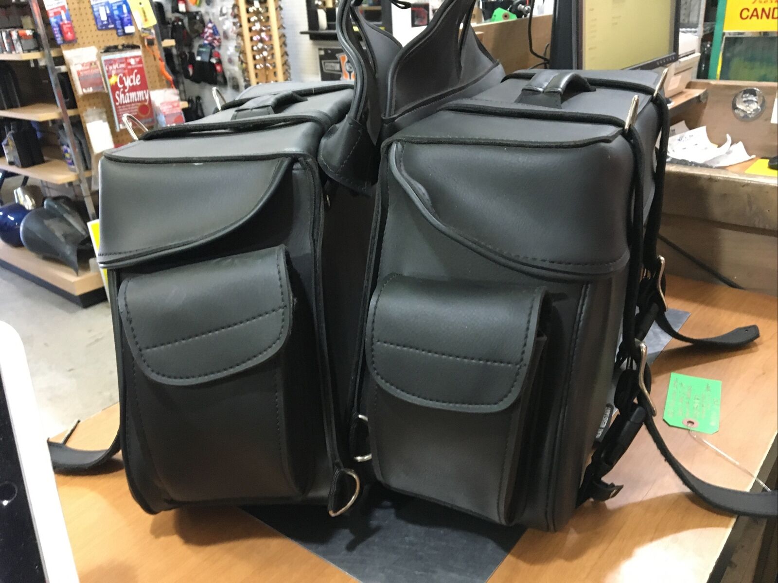 Milwaukee Leather Black Large Zip-off Throw-over Saddlebags #SH57401ZB. Condition is used.one turn off tie down and minor rub on bottom. Measures 6” W, 11” H, 18” L buyer is responsible for fitment and applications