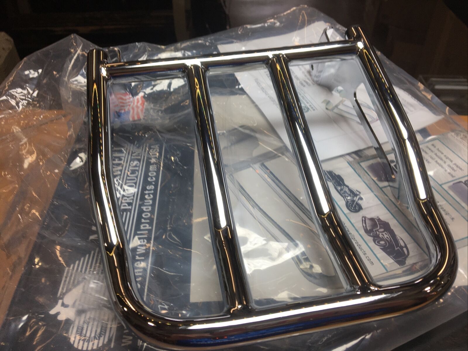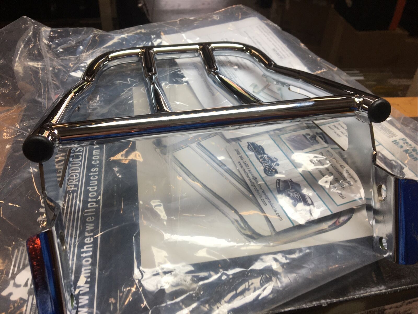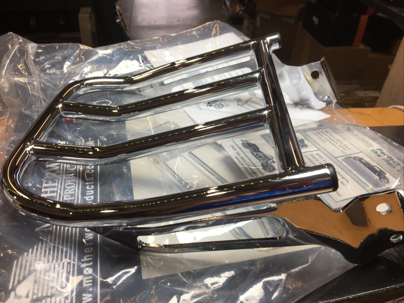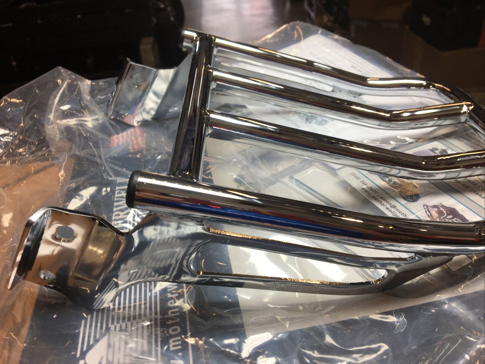 Motherwell Chrome 2-up Backrest Luggage Rack For Harley #1510-0096. Condition is new. Fits Harley Davidson 04-20’ XL models with detachable sideplates except mini rail or short rail sissybar uprights buyer is responsible for fitment and applications