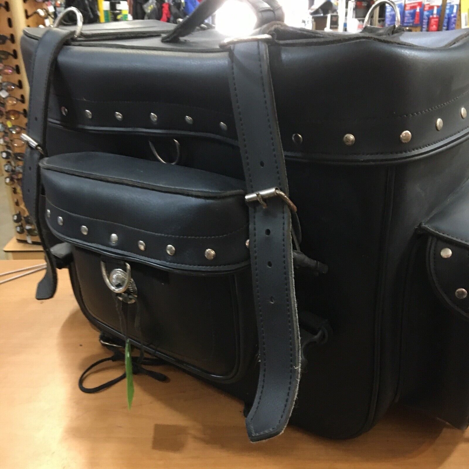 The Viking sissybar/tail bag studded is a rugged and stylish accessory designed for motorcycle enthusiasts who value both functionality and aesthetics. This used bag may show signs of wear, but its quality craftsmanship is evident in its durable construction and attention to detail. The studded design adds a touch of edgy flair, making it a standout piece on any bike.