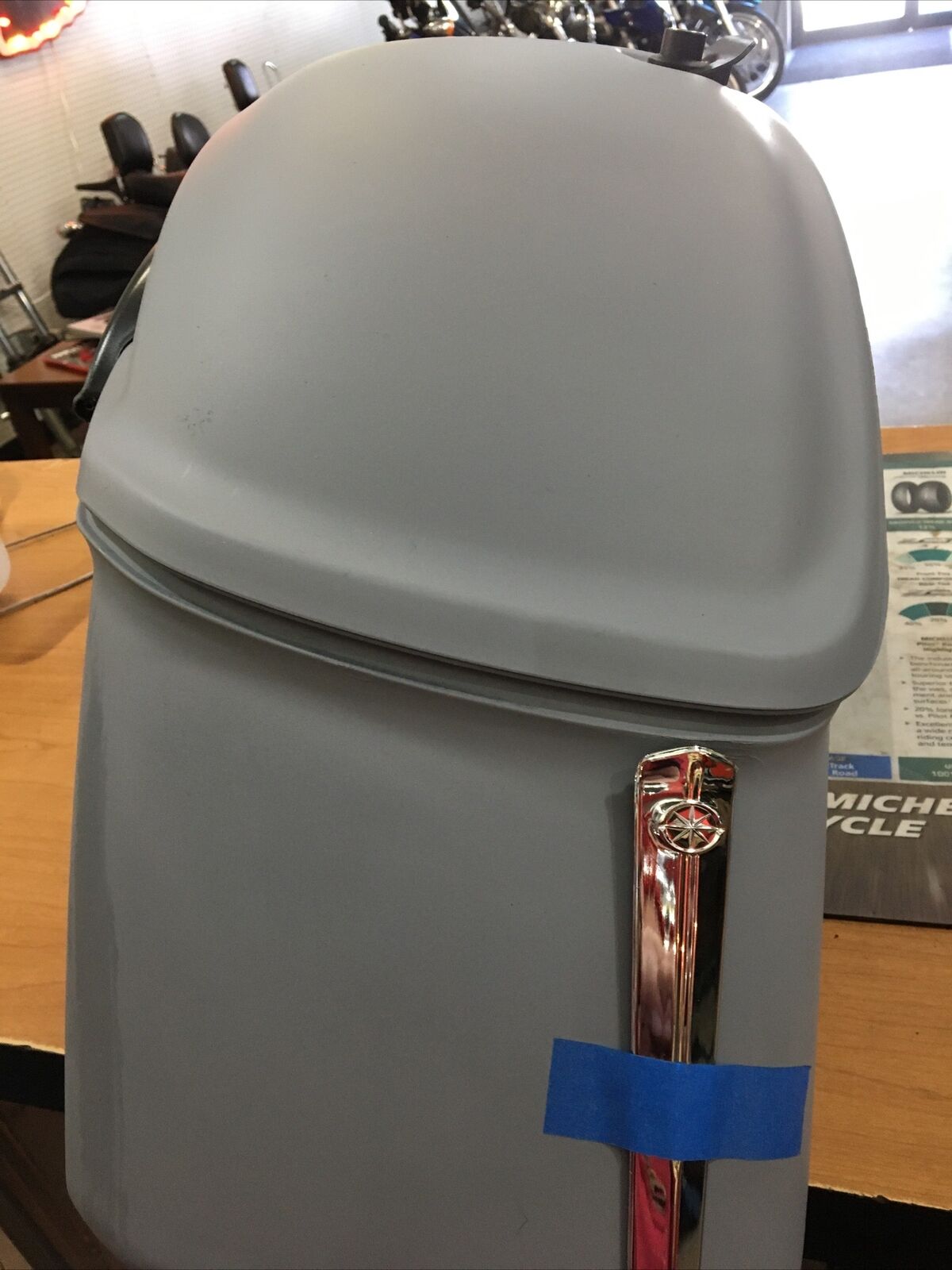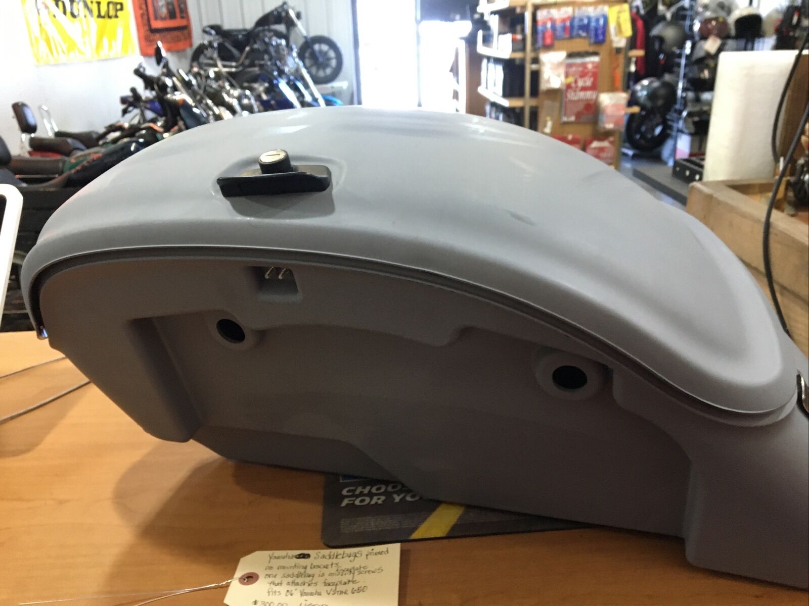 Yamaha Saddlebags Primed. Never installed. No mounting brackets. One saddlebag is missing faceplate and screws that attach faceplate. Fits 06’ Yamaha V-Star 650 models buyer is responsible for fitment and applications