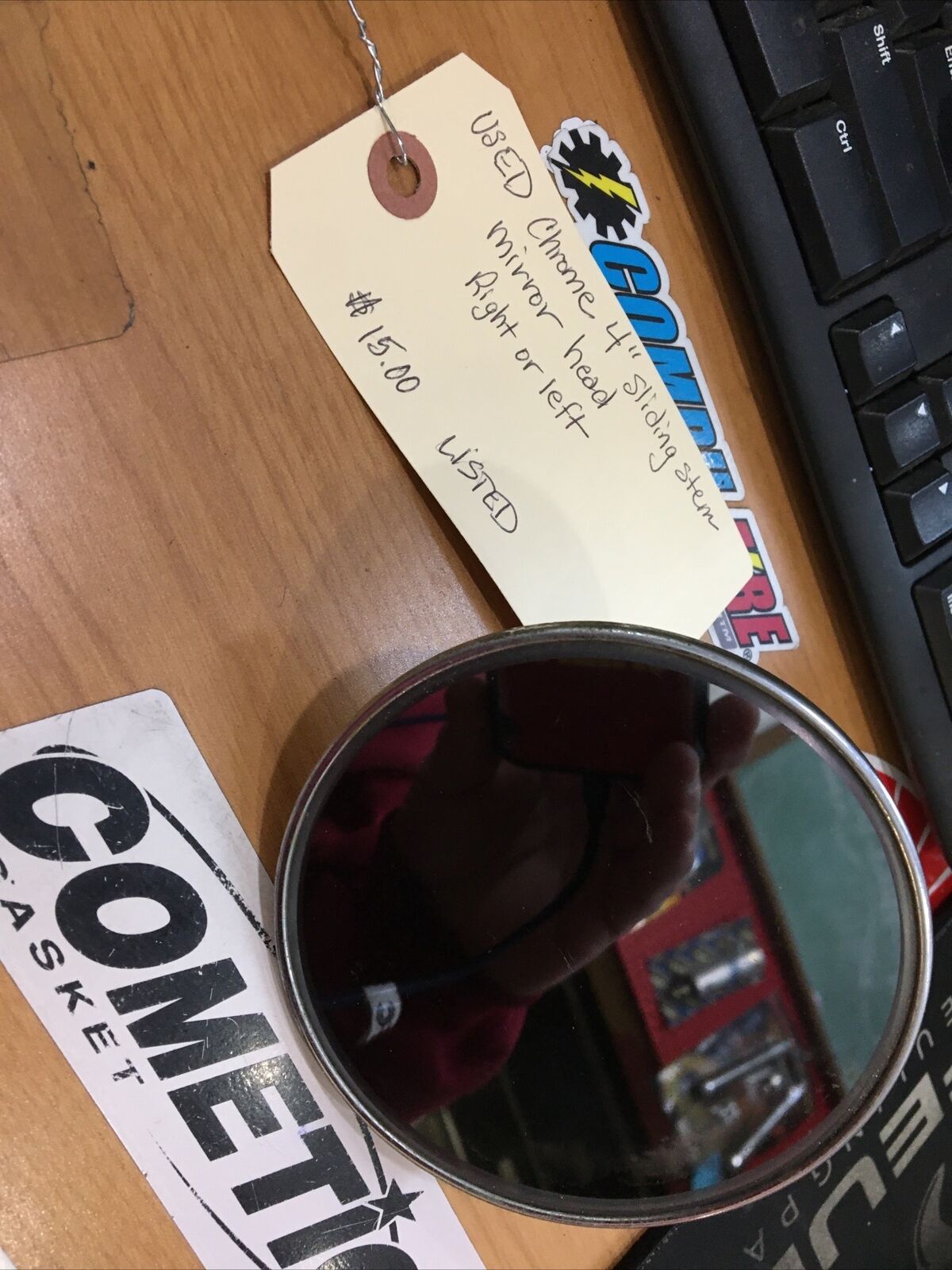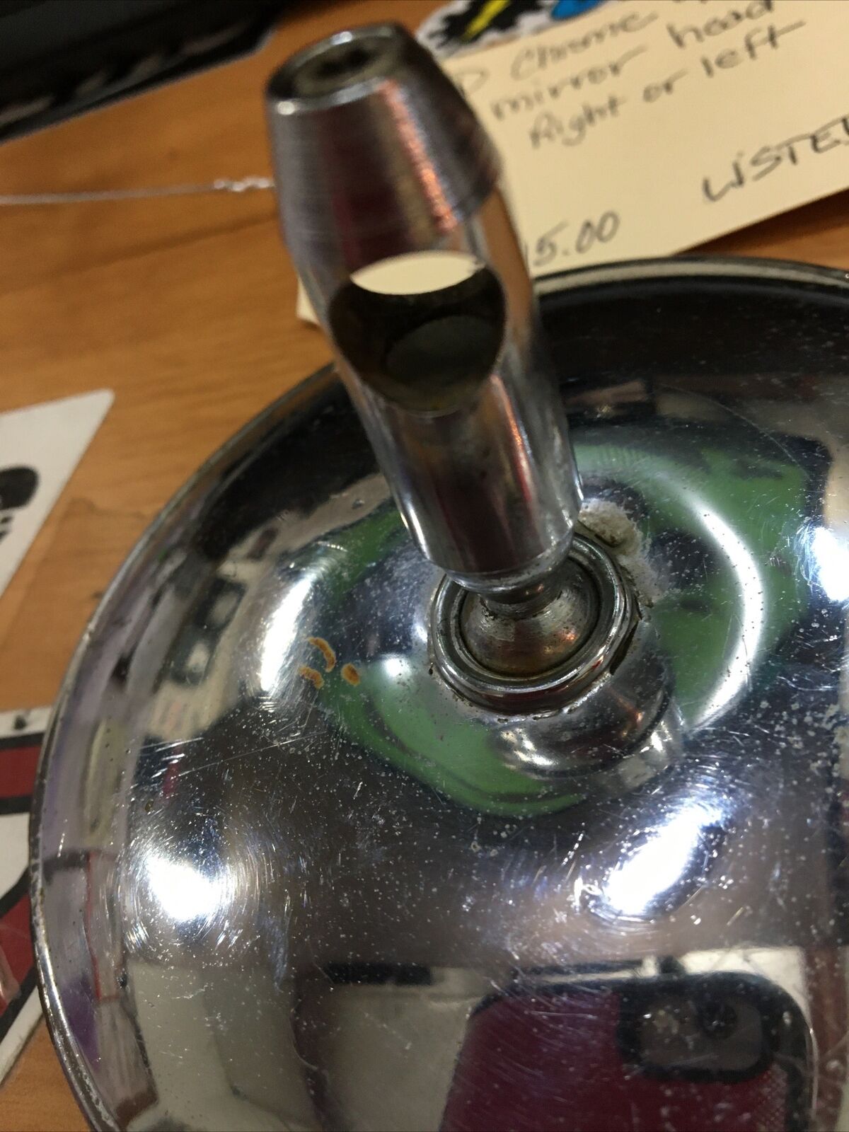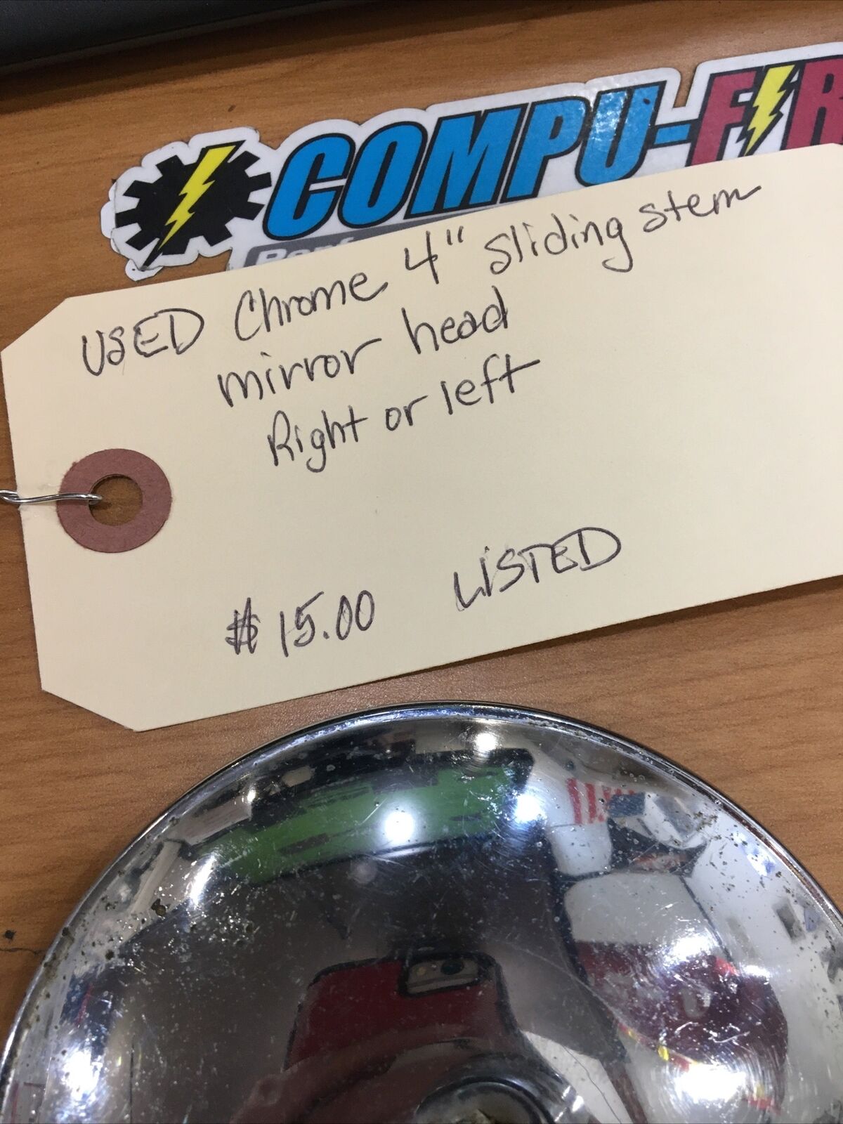 Chrome 4” Sliding Stem Mirror Head R or L. Condition is used. Missing mirror stem. Buyer is responsible for fitment and applications