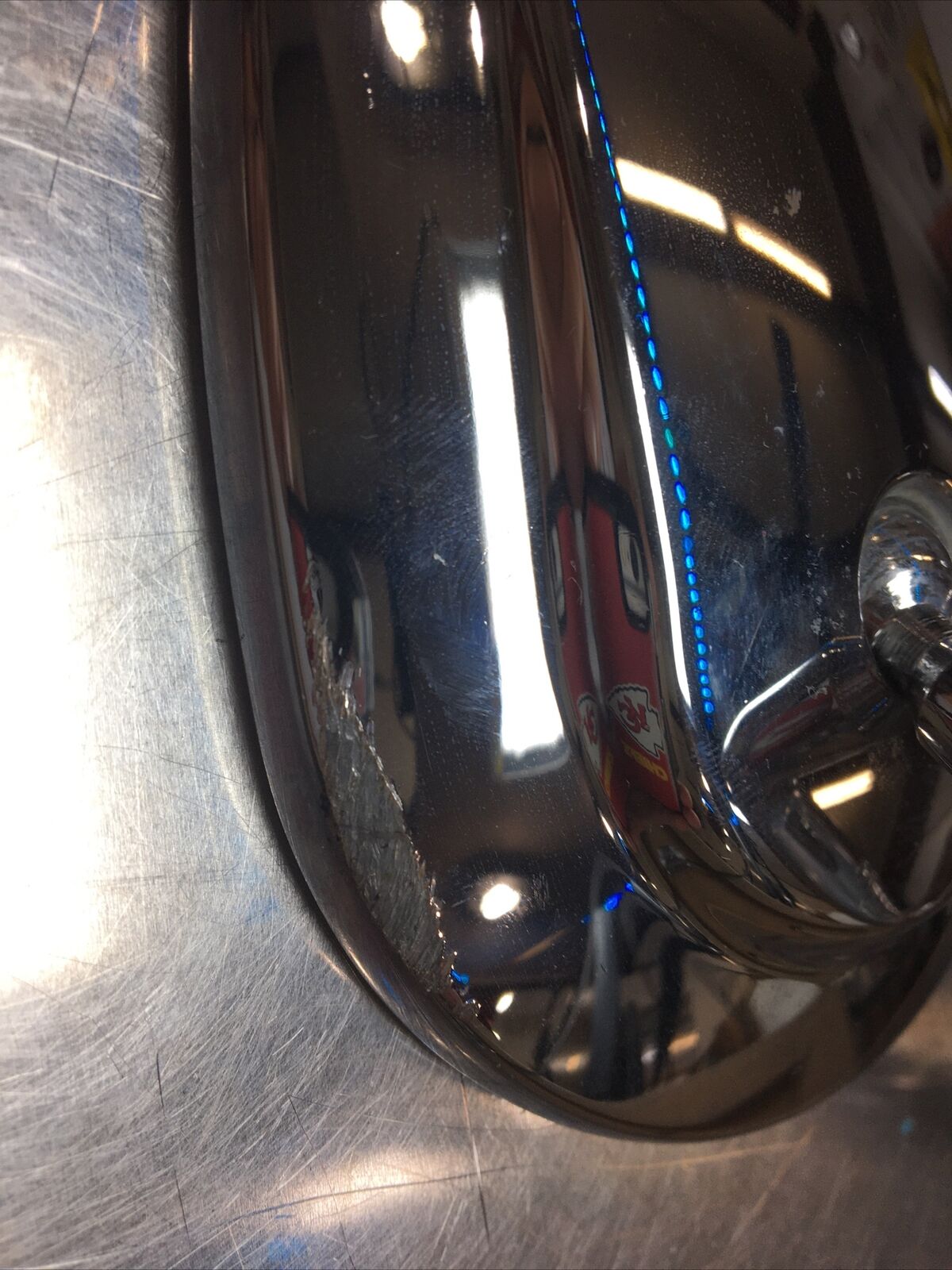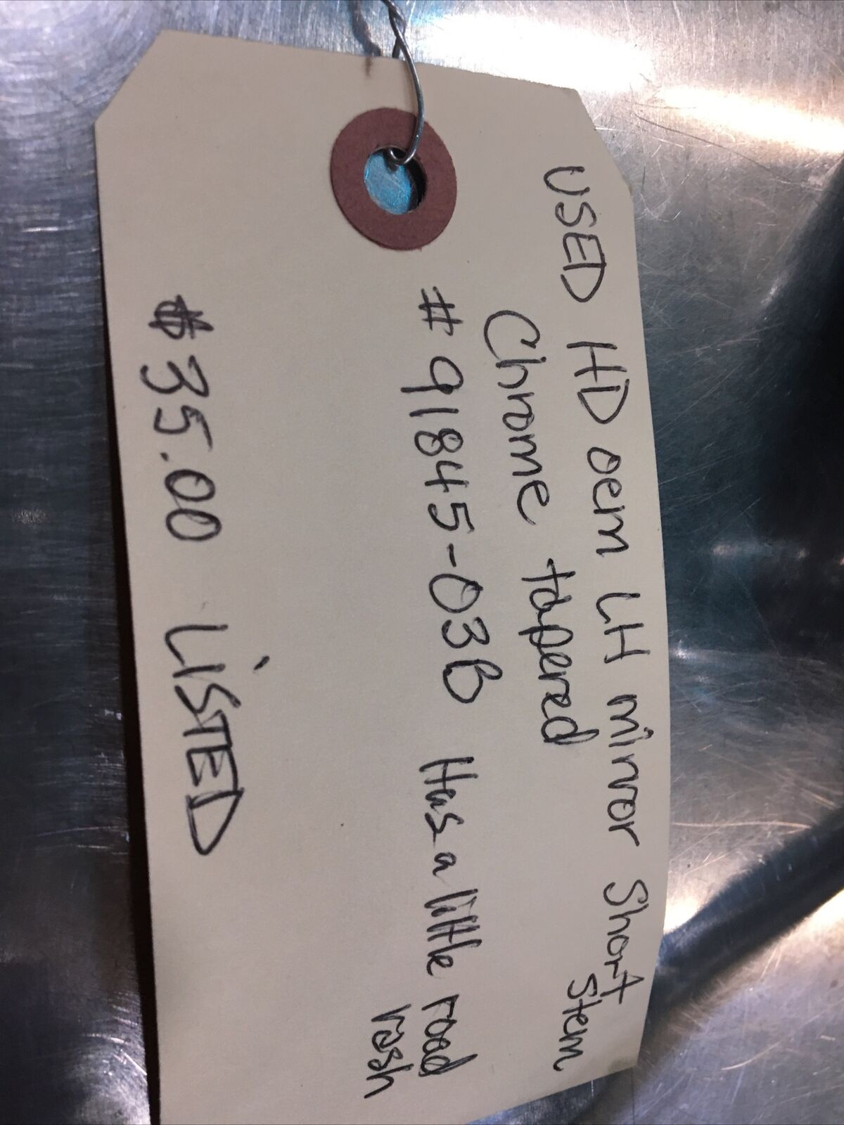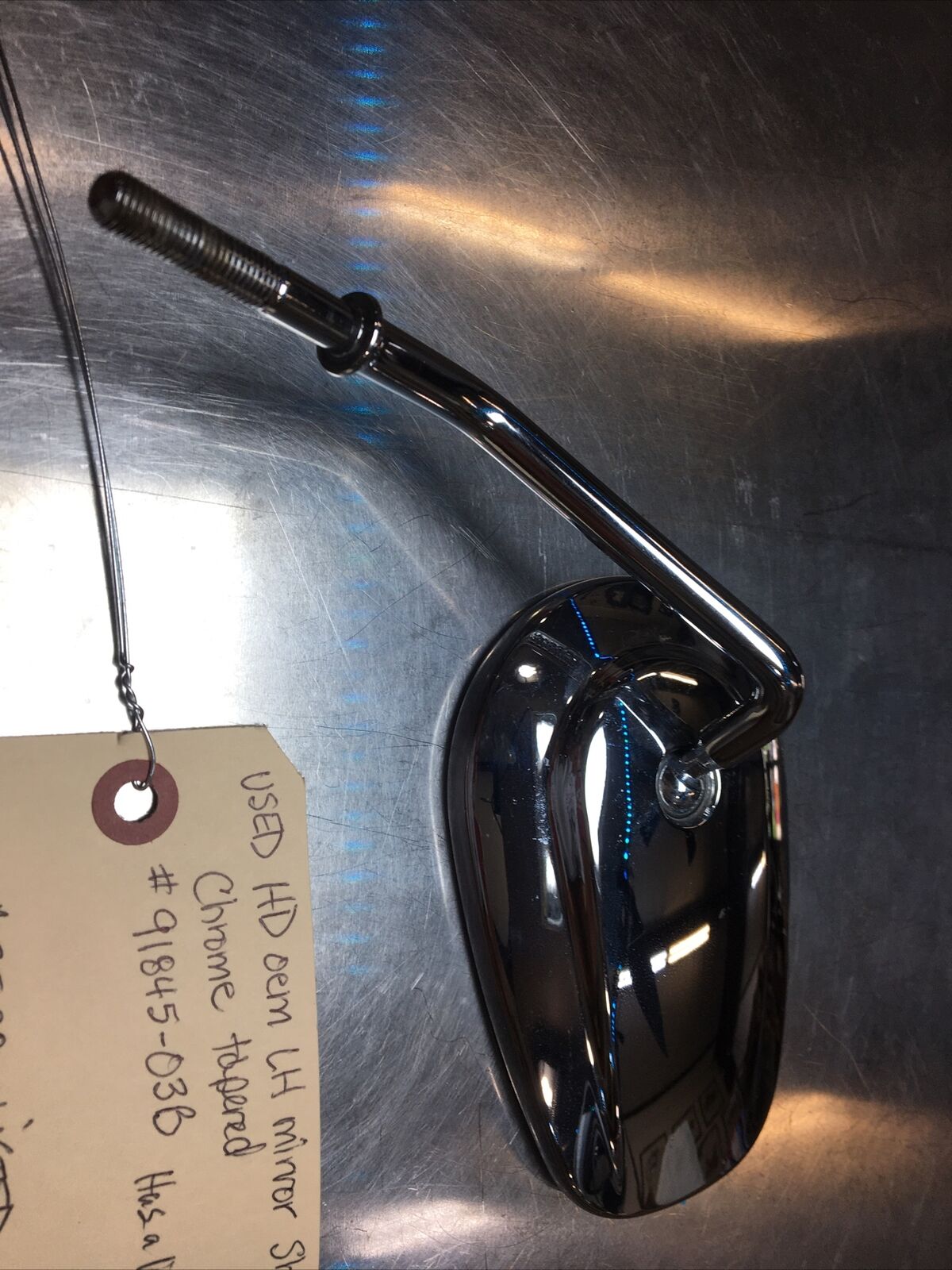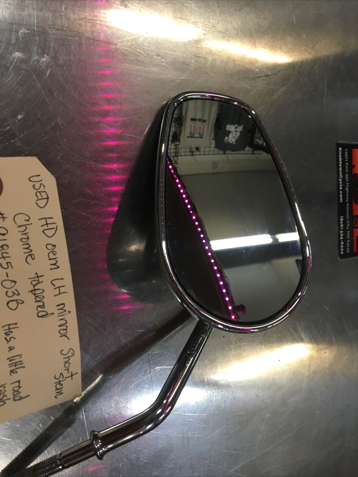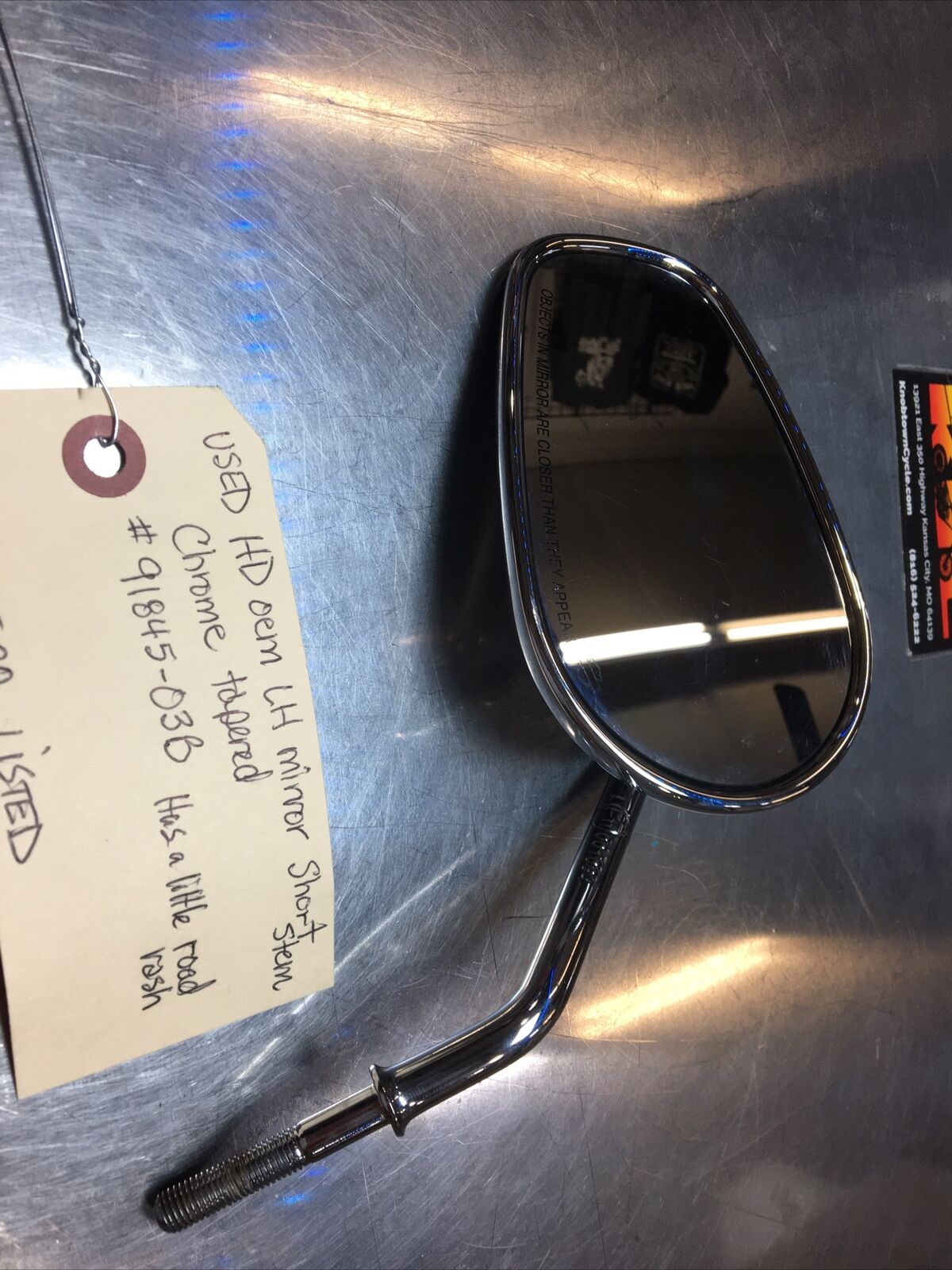Harley Davidson oem LH Mirror Short Stem Chrome Tapered #91845-03B. Condition is used. Has a little rash. Buyer is responsible for fitment and applications