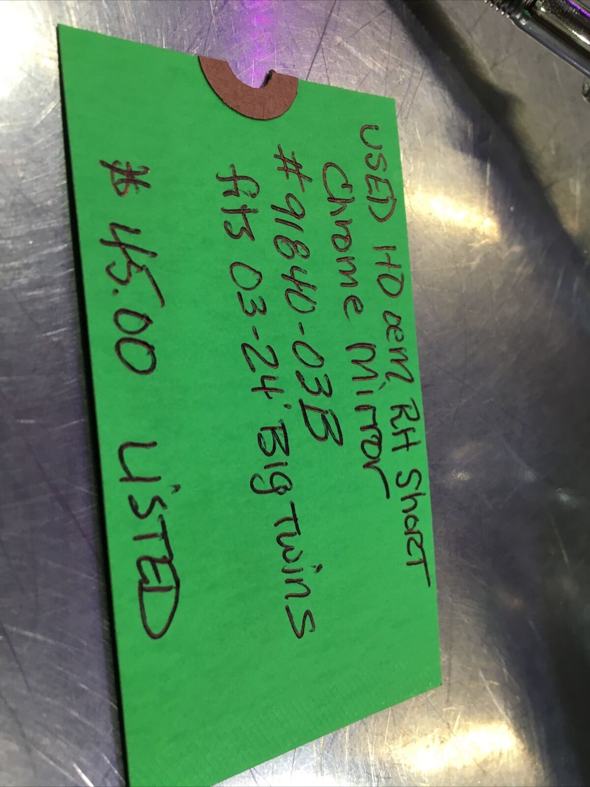 Harley Davidson oem RH Short Chrome Mirror #91840-03B. Condition is used. Fits 03-24’ Big Twins buyer is responsible for fitment and applications