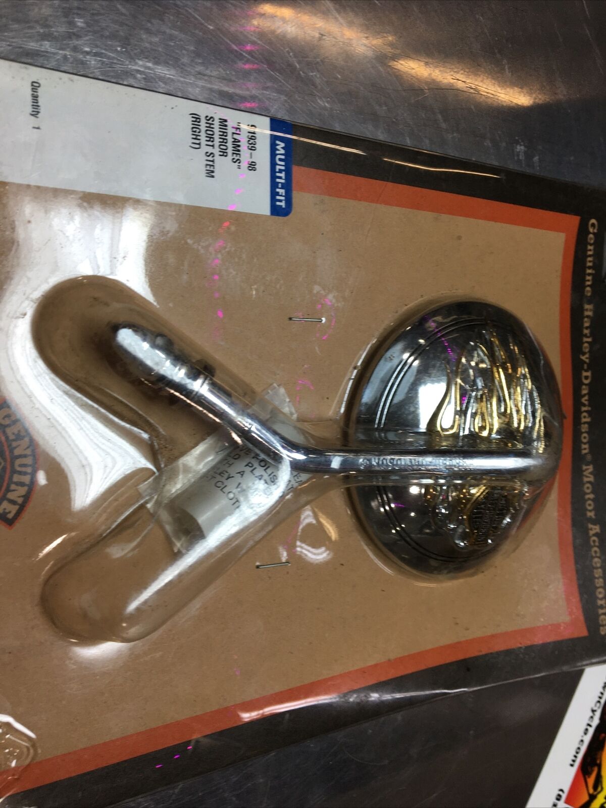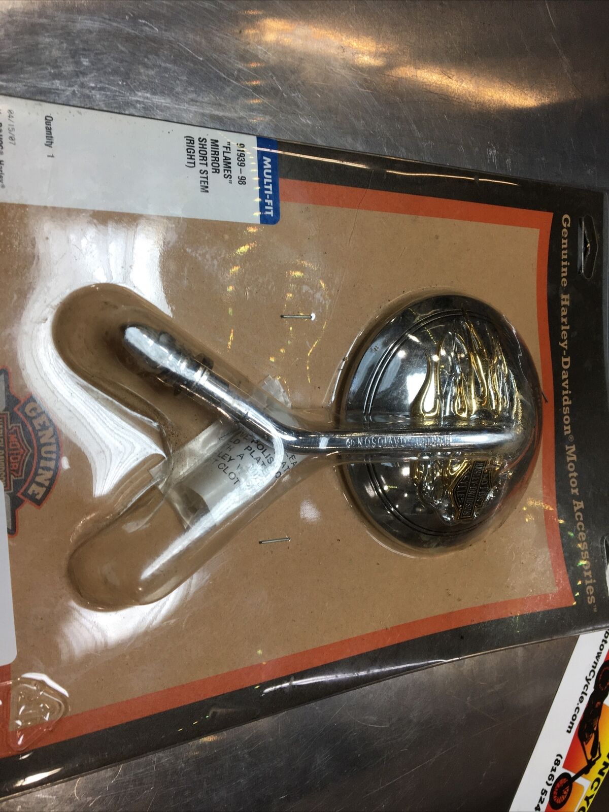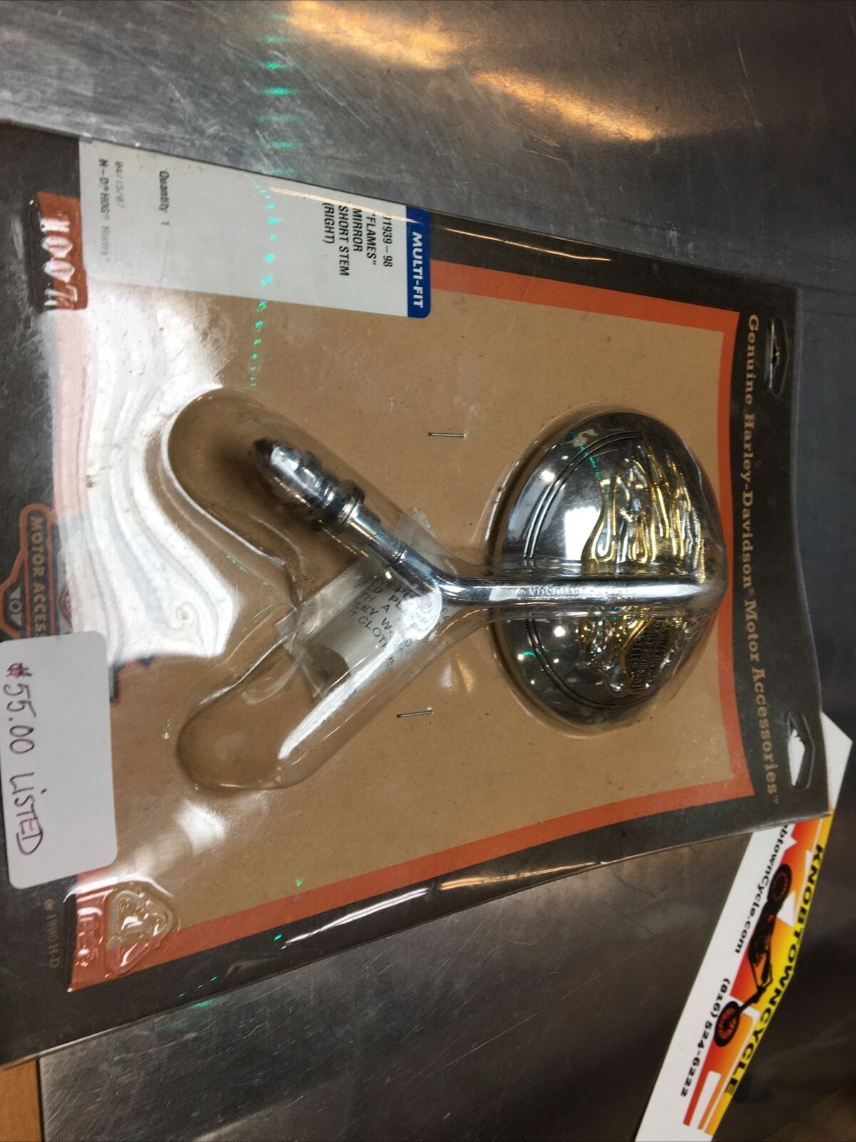Harley Davidson oem RH Short Stem Mirror Flames #91939-98.Condition is new. Buyer is responsible for fitment and applications