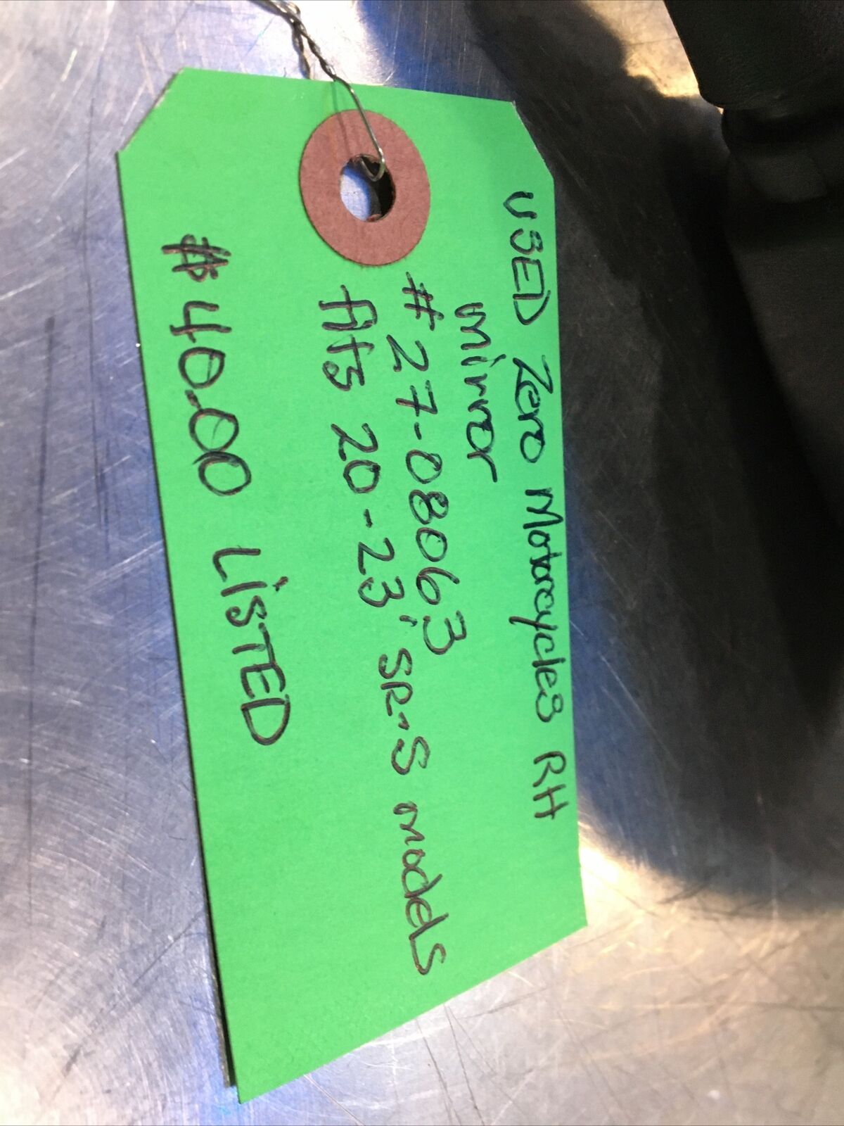 Zero Motorcycle RH Mirror #27-08063. Condition is used. Fits 20-23’ SR-S models buyer is responsible for fitment and applications