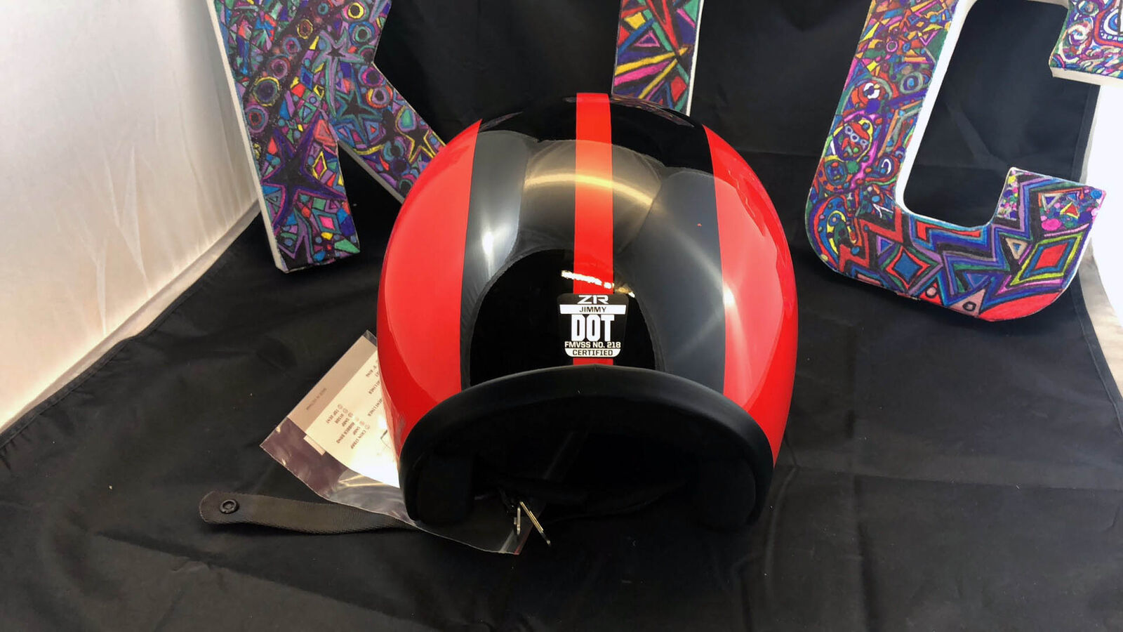 0104-1450 Z1R Jimmy Retro 2 Helmet in Red with a Black Stripe. The popular Jimmy steps into the way-back machine with some retro racer stripes; it delivers a classic look with modern features.