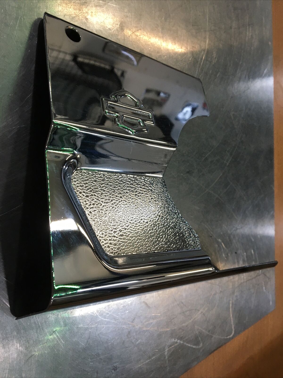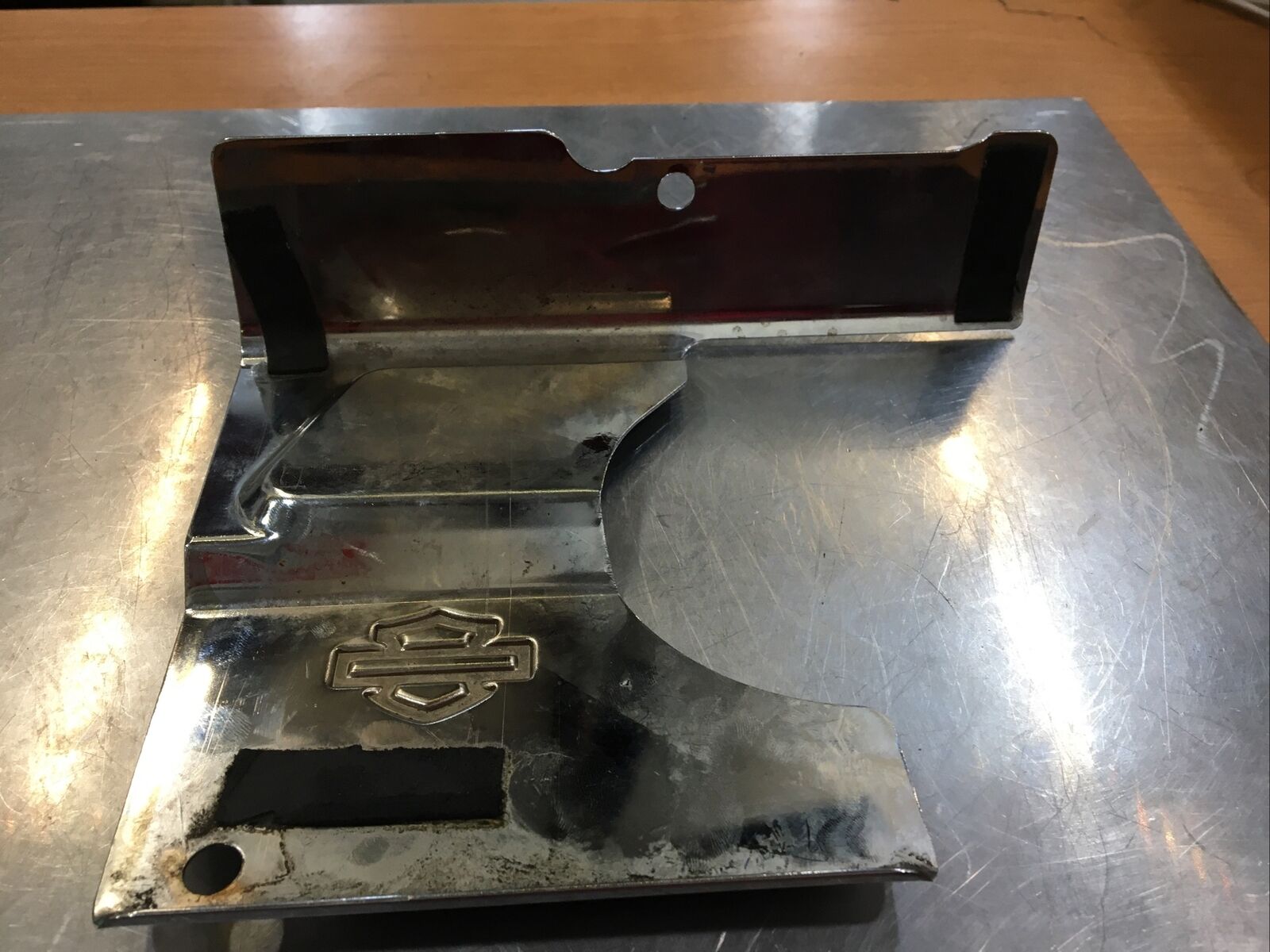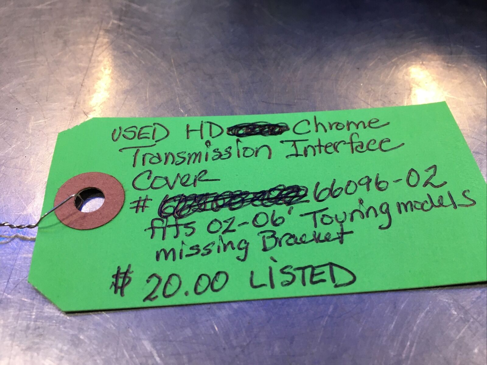 Harley Davidson Chrome Transmission Interface Cover #66096-02. Condition is used. No mounting bracket. Fits 02-06’ Touring models buyer is responsible for fitment and applications