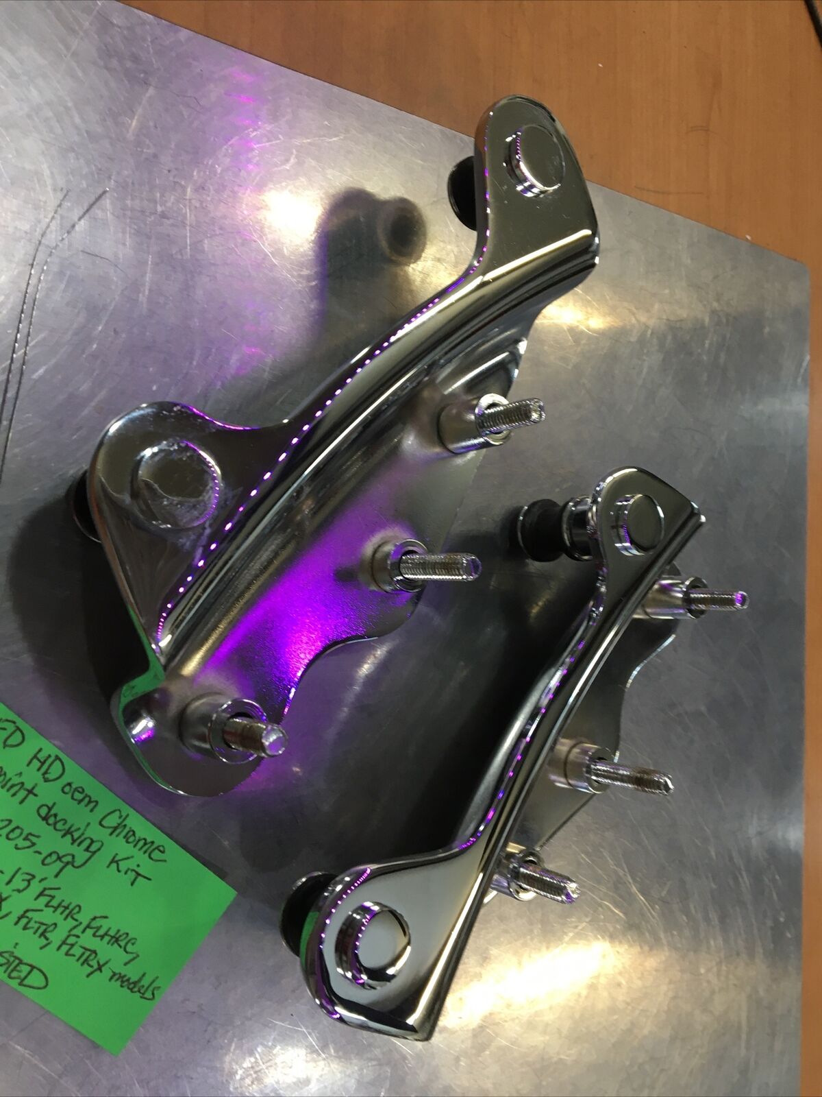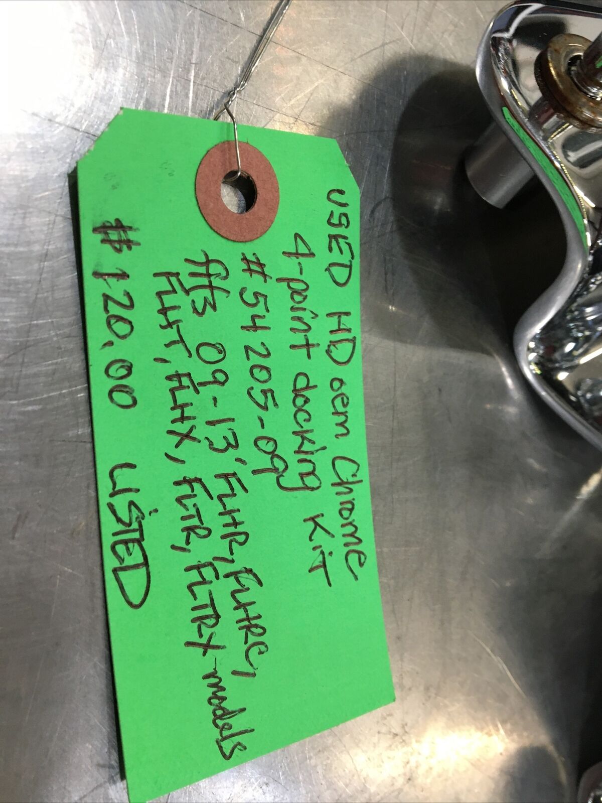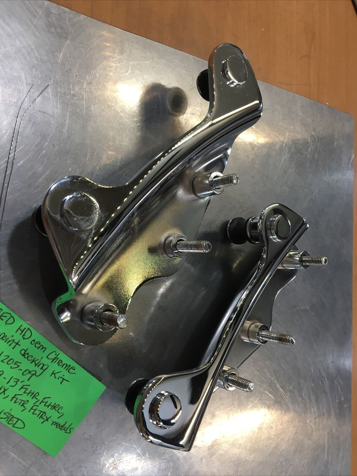 Harley Davidson oem Chrome 4-Point Docking Kit #54205-09. Condition is used. Fits 09-13’ FLHR, FLHRC, FLHT, FLHX, FLTRX, FLTR models buyer is responsible for fitment and applications