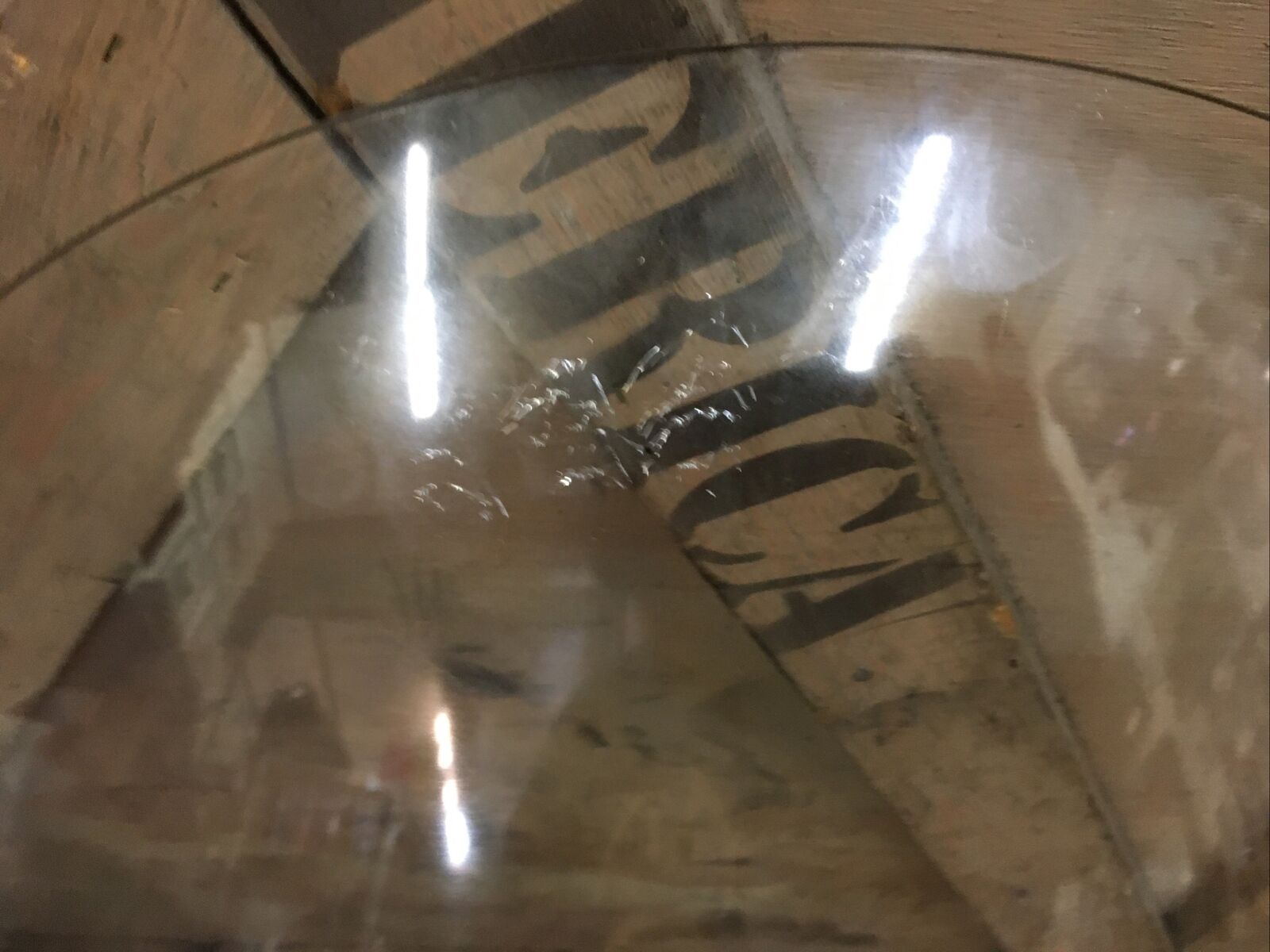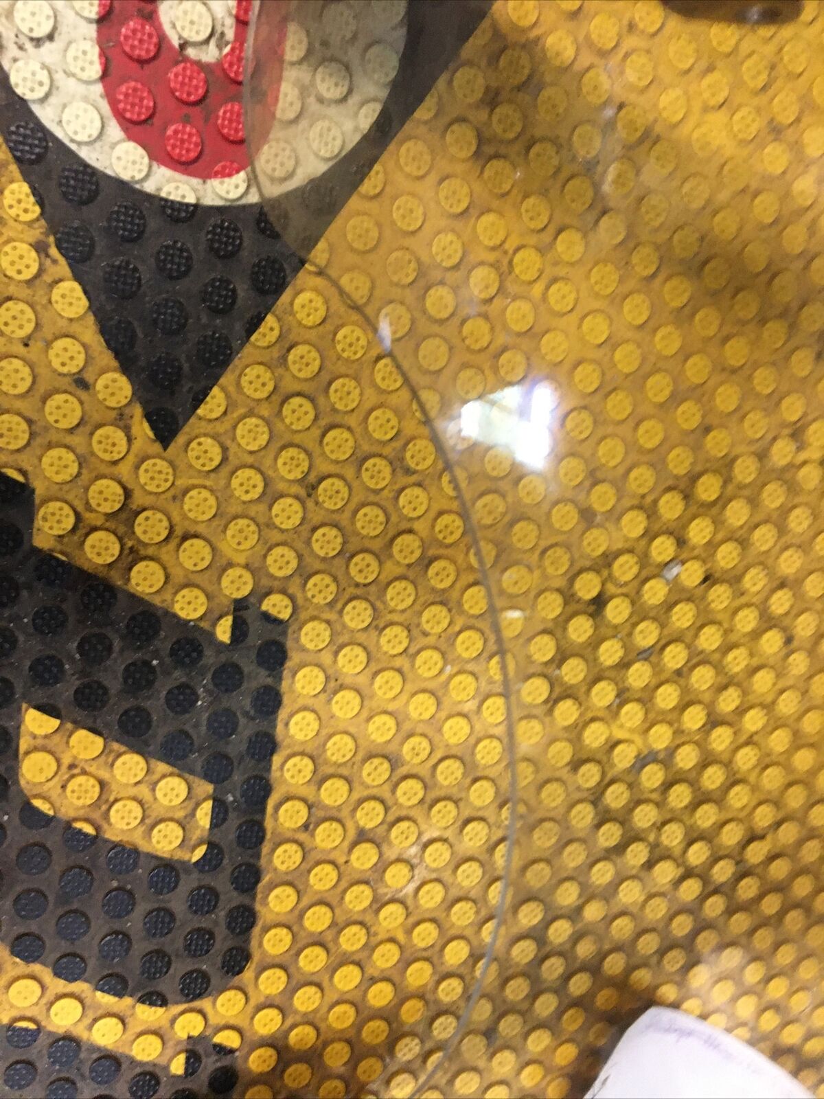 Crafted from durable lexan material, this windshield provides superior protection against wind, debris, and other elements while on the road. Its standard height ensures optimal coverage without obstructing your view, allowing for a comfortable and safe ride every time. Despite being a used product, it still maintains its quality, with only minor scratches and cracks around the headlight cutout and a small spot where the lexan appears to be delaminated.